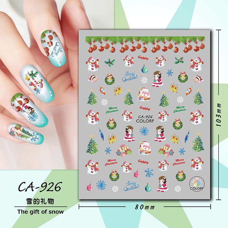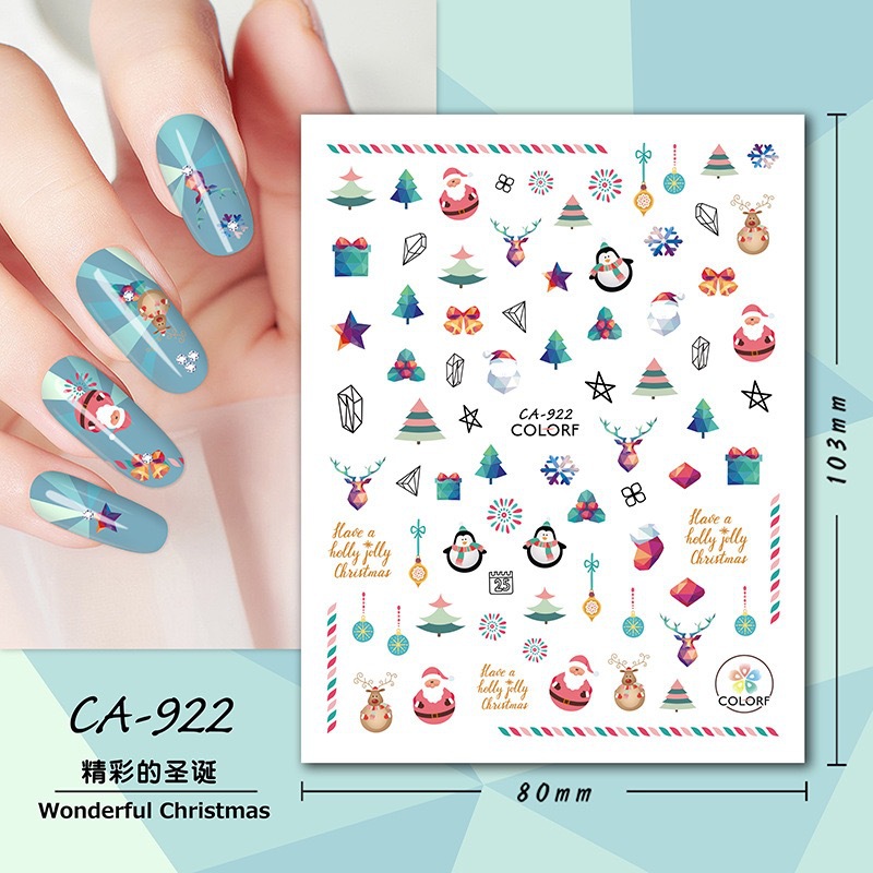 국경 네일 아트 새로운 접착 스티커 크리스마스 겨울 만화 눈송이 엘크 산타 클로스 벨 포장