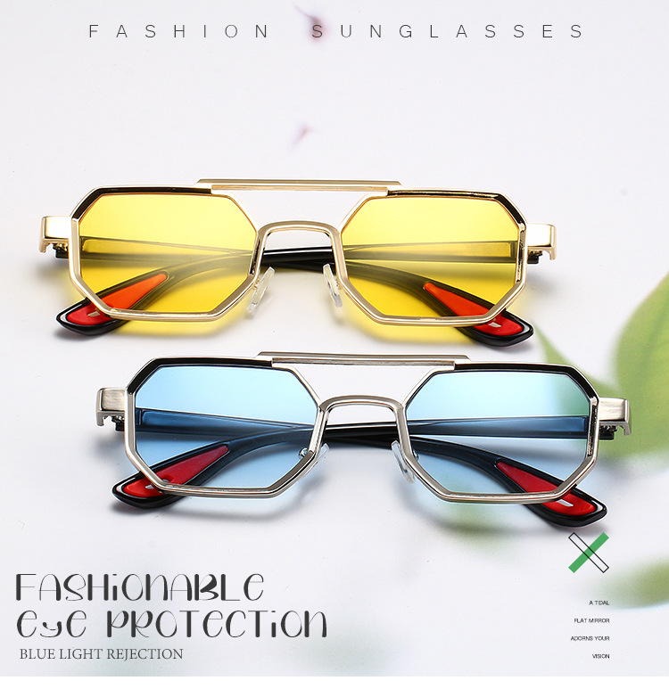 국경 간 유행 금속 더블 빔 선글라스 패션 비즈니스 남성 야외 UV 보호 선글라스 맞춤형 작은 프레임 안경스토어 가기