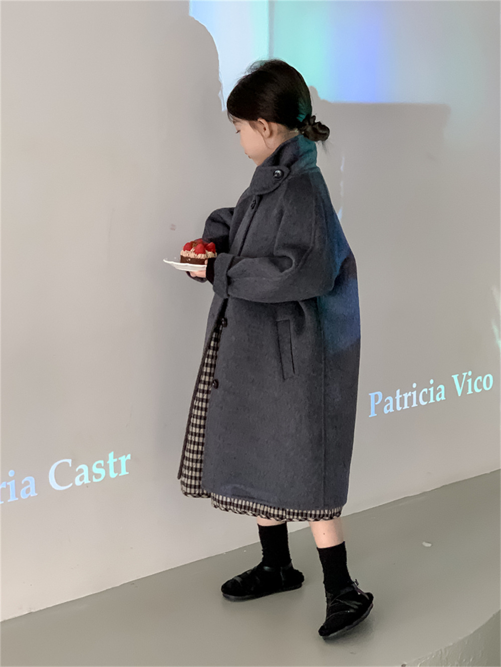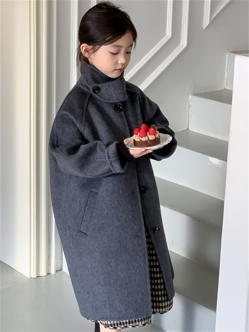 꽃과 찾는 아이 어린이 양면 양면 양모 코트 2024 신소녀 겨울 모직 코트 걸스 트렌디