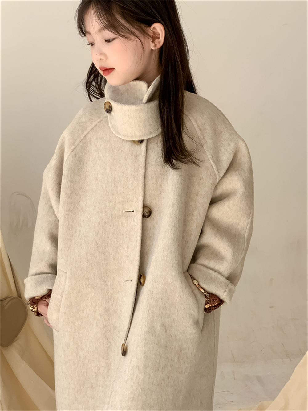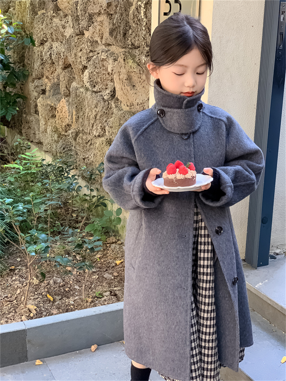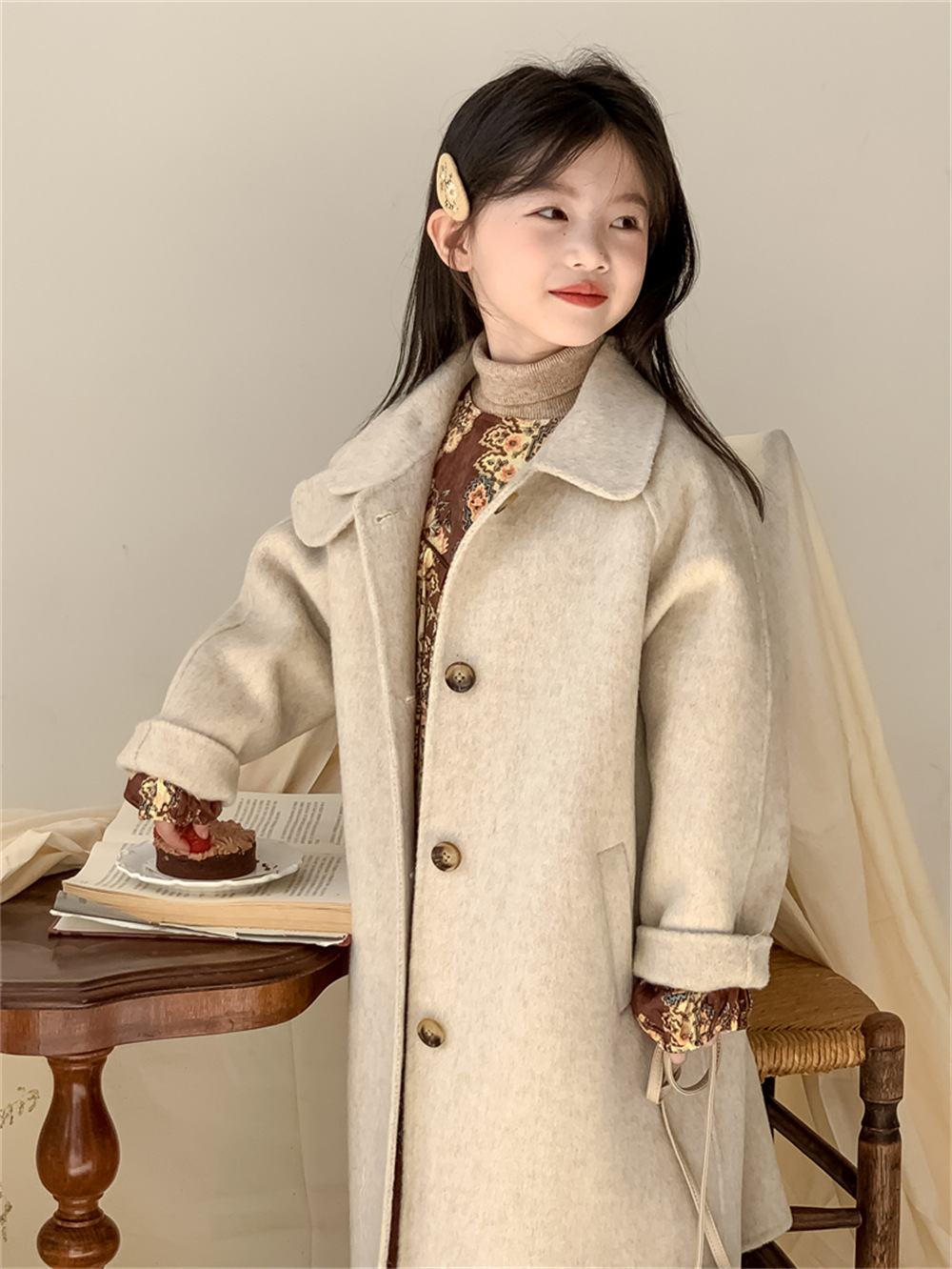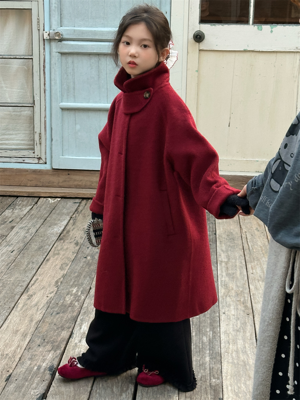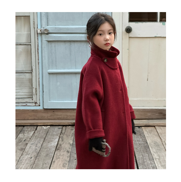 꽃과 찾는 아이 어린이 양면 양면 양모 코트 2024 신소녀 겨울 모직 코트 걸스 트렌디스토어 가기