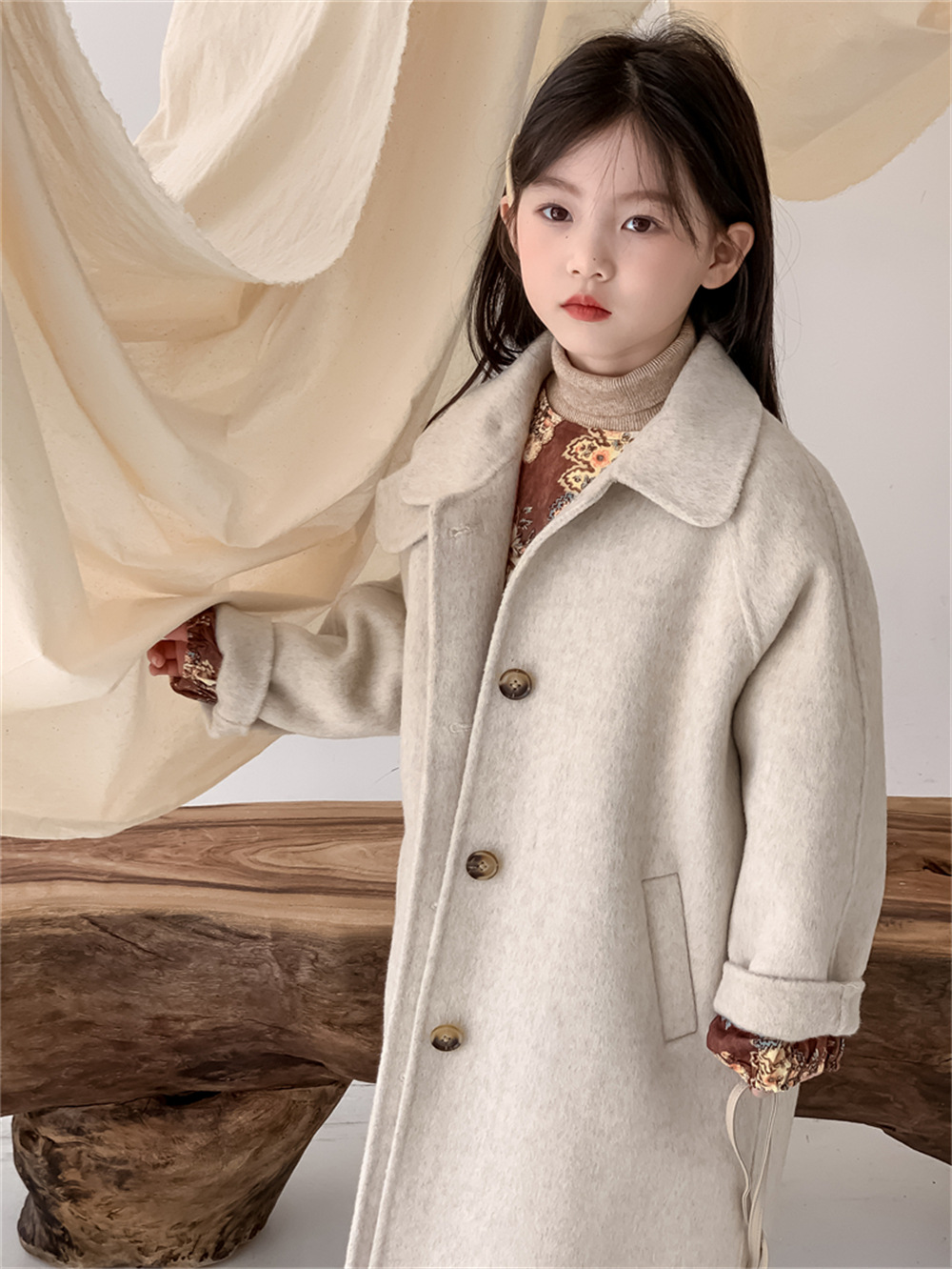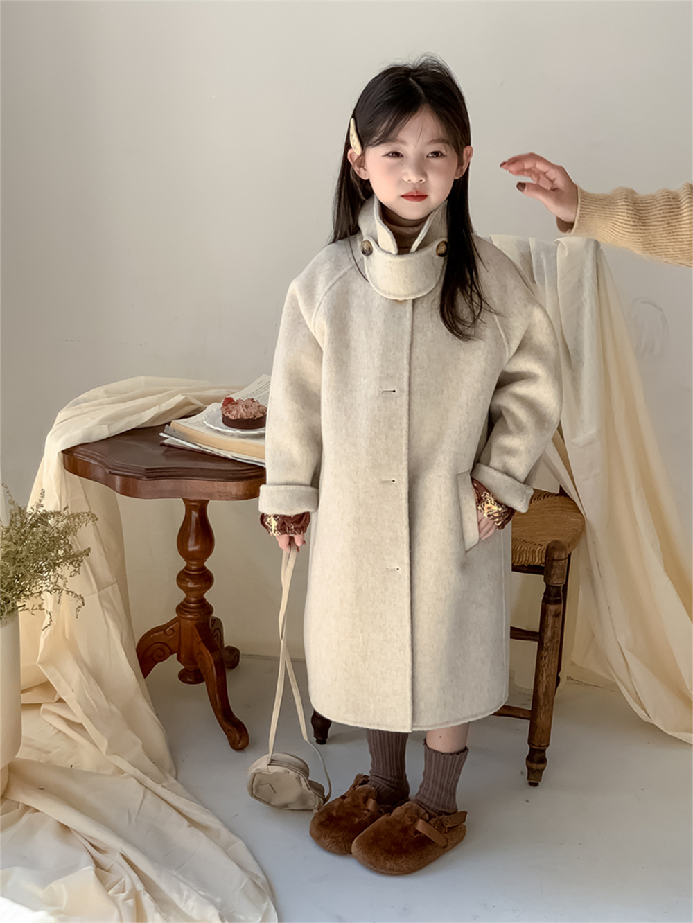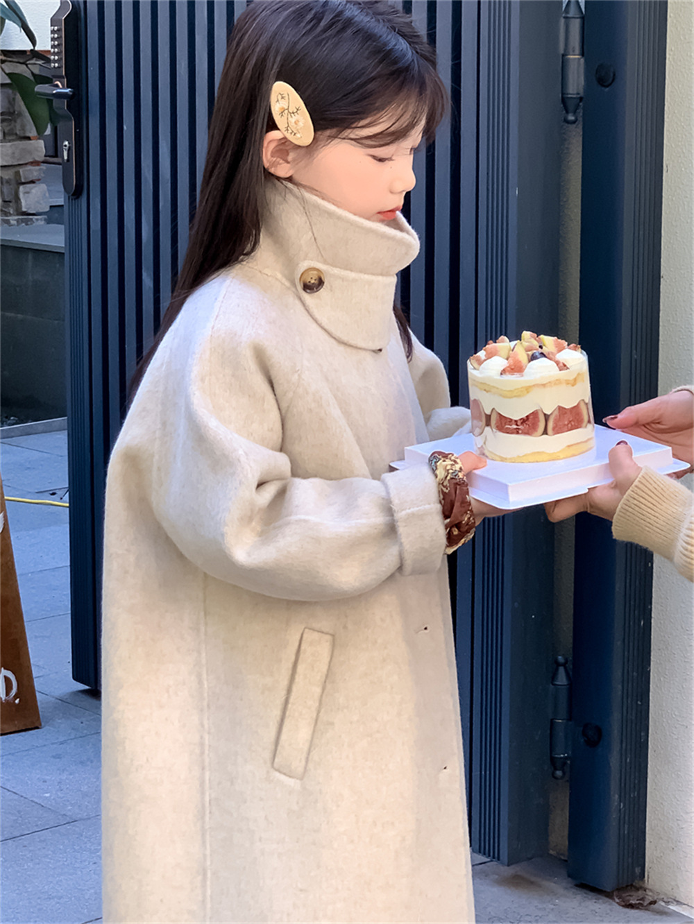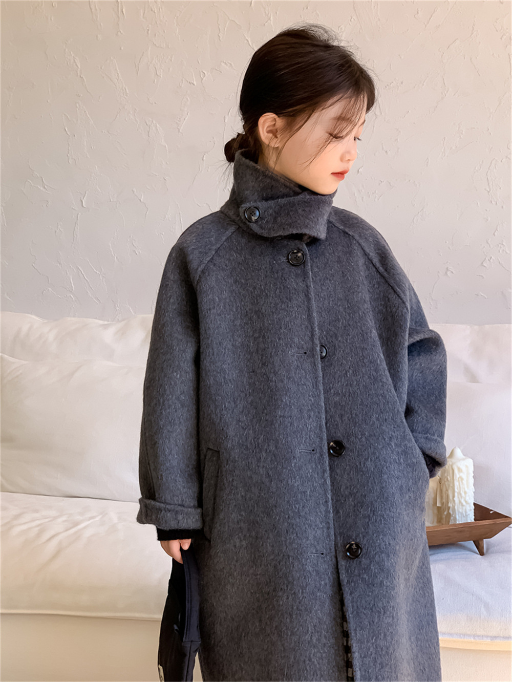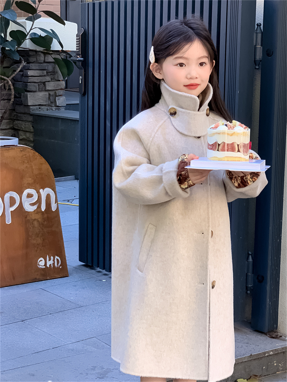 꽃과 찾는 아이 어린이 양면 양면 양모 코트 2024 신소녀 겨울 모직 코트 걸스 트렌디스토어 가기