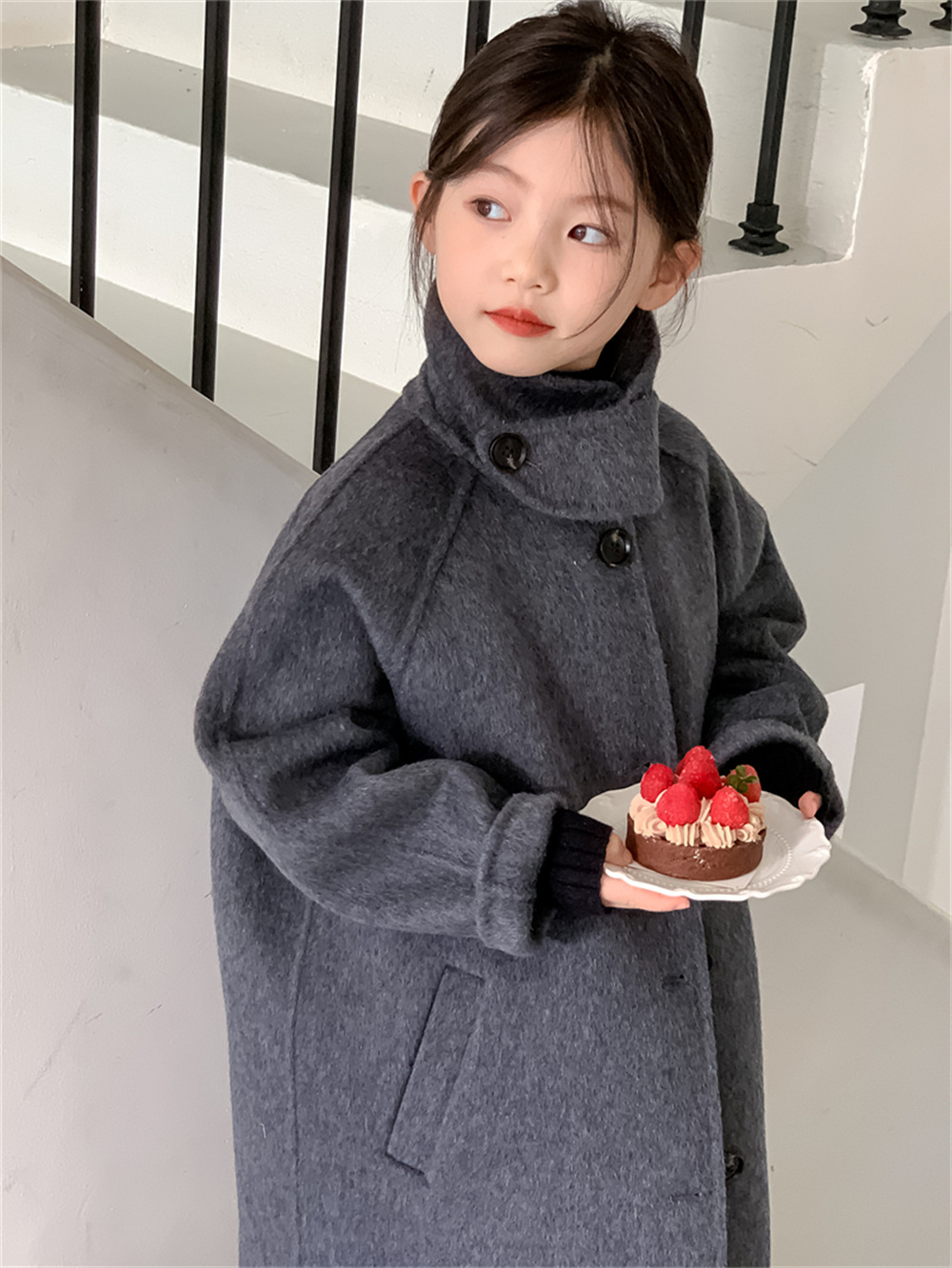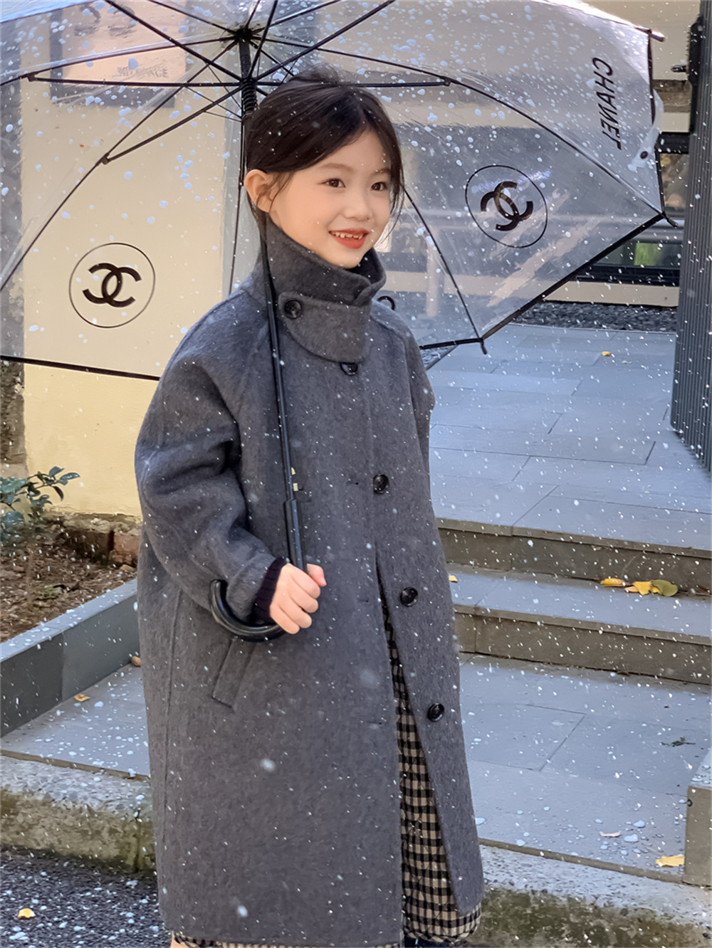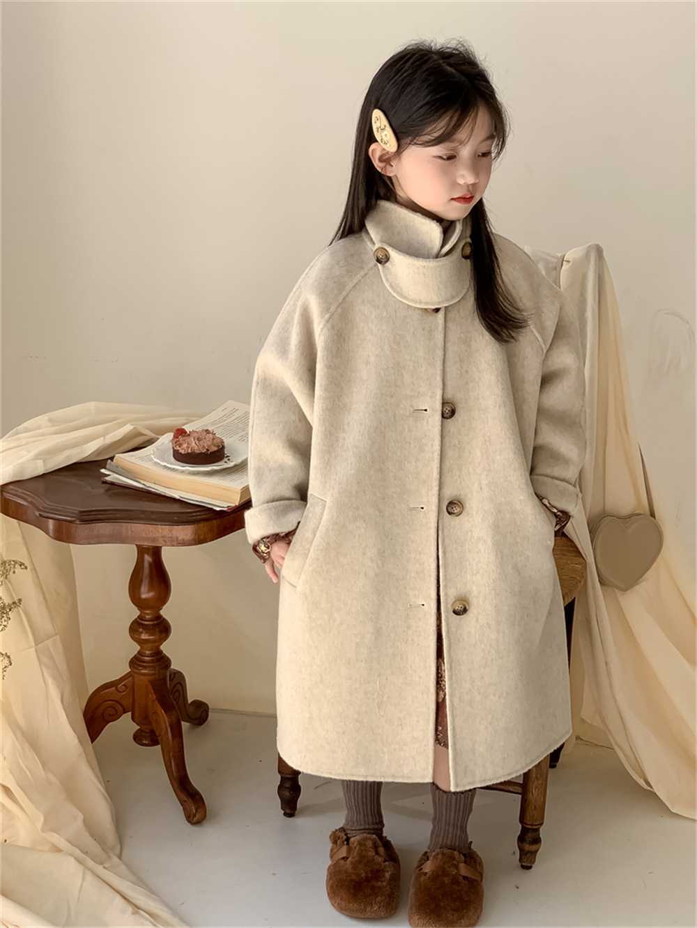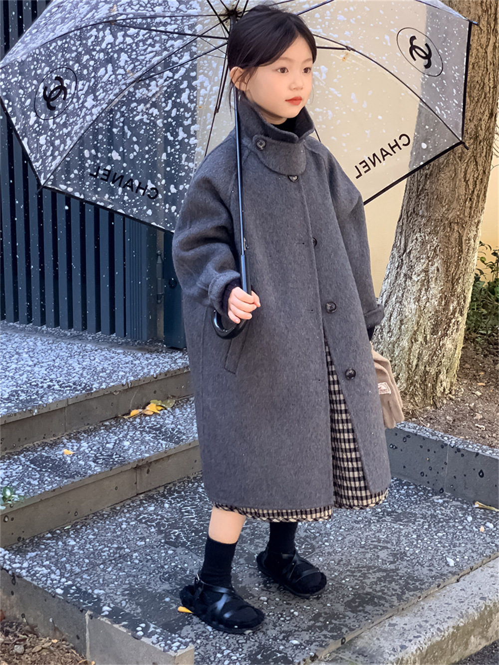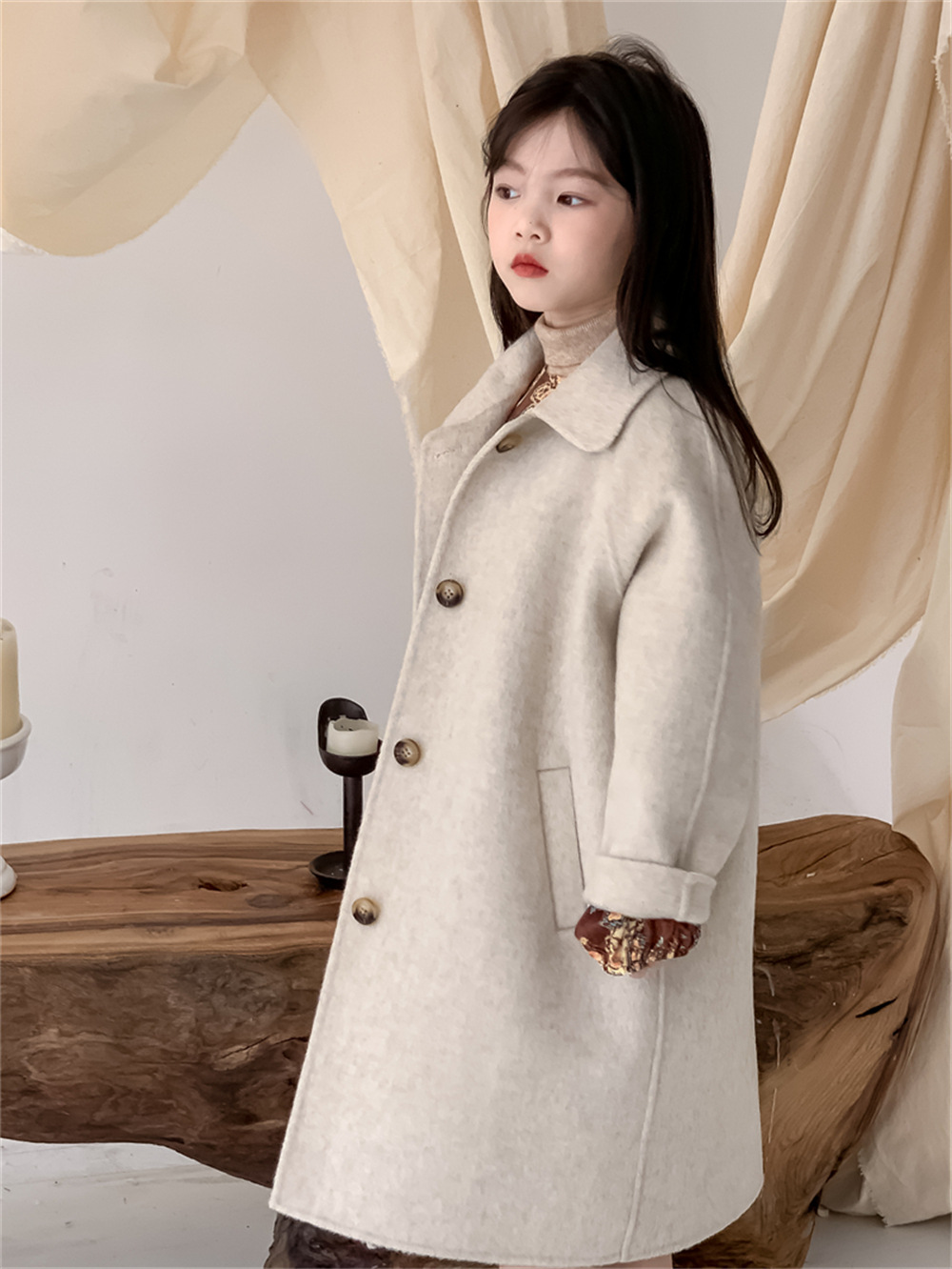 꽃과 찾는 아이 어린이 양면 양면 양모 코트 2024 신소녀 겨울 모직 코트 걸스 트렌디스토어 가기