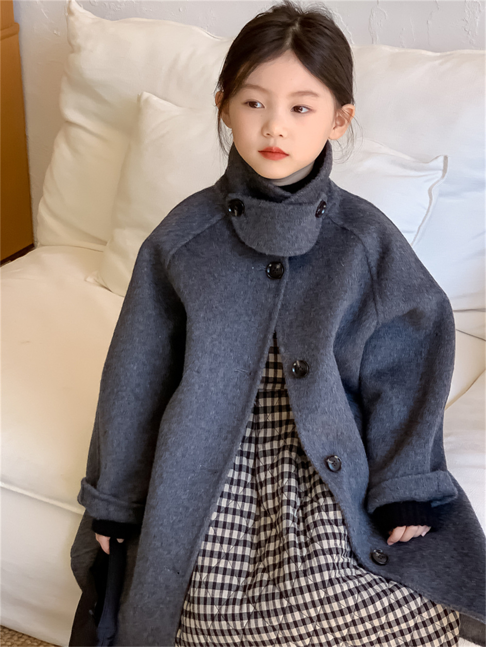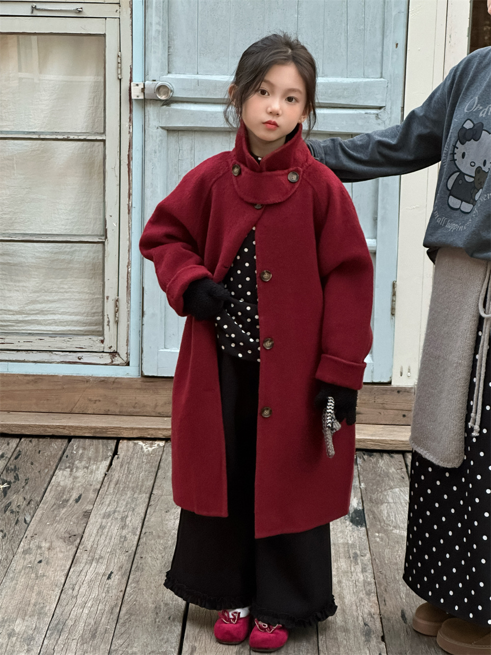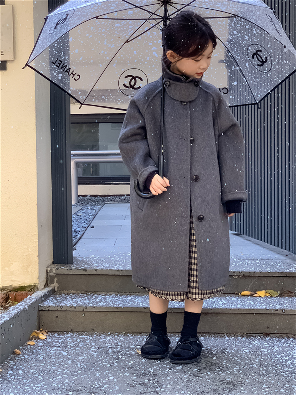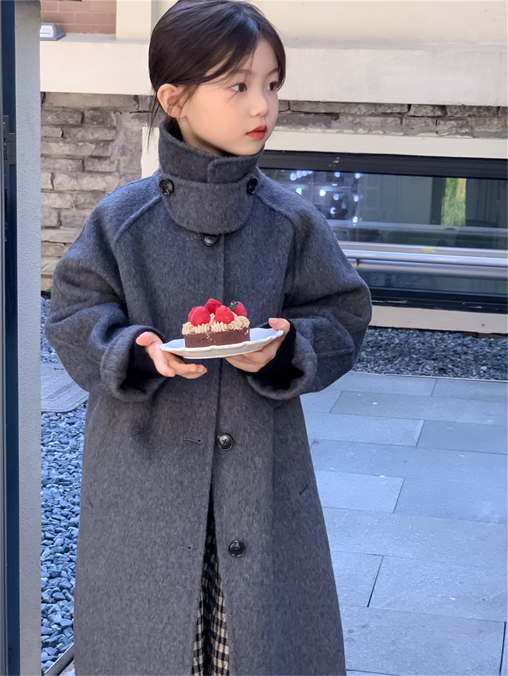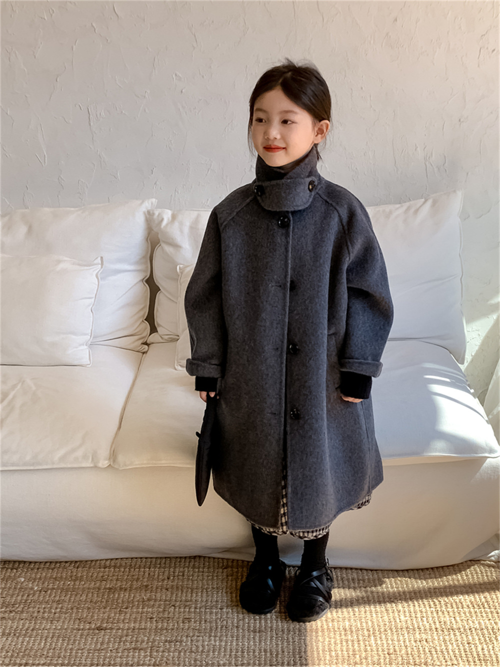 꽃과 찾는 아이 어린이 양면 양면 양모 코트 2024 신소녀 겨울 모직 코트 걸스 트렌디스토어 가기