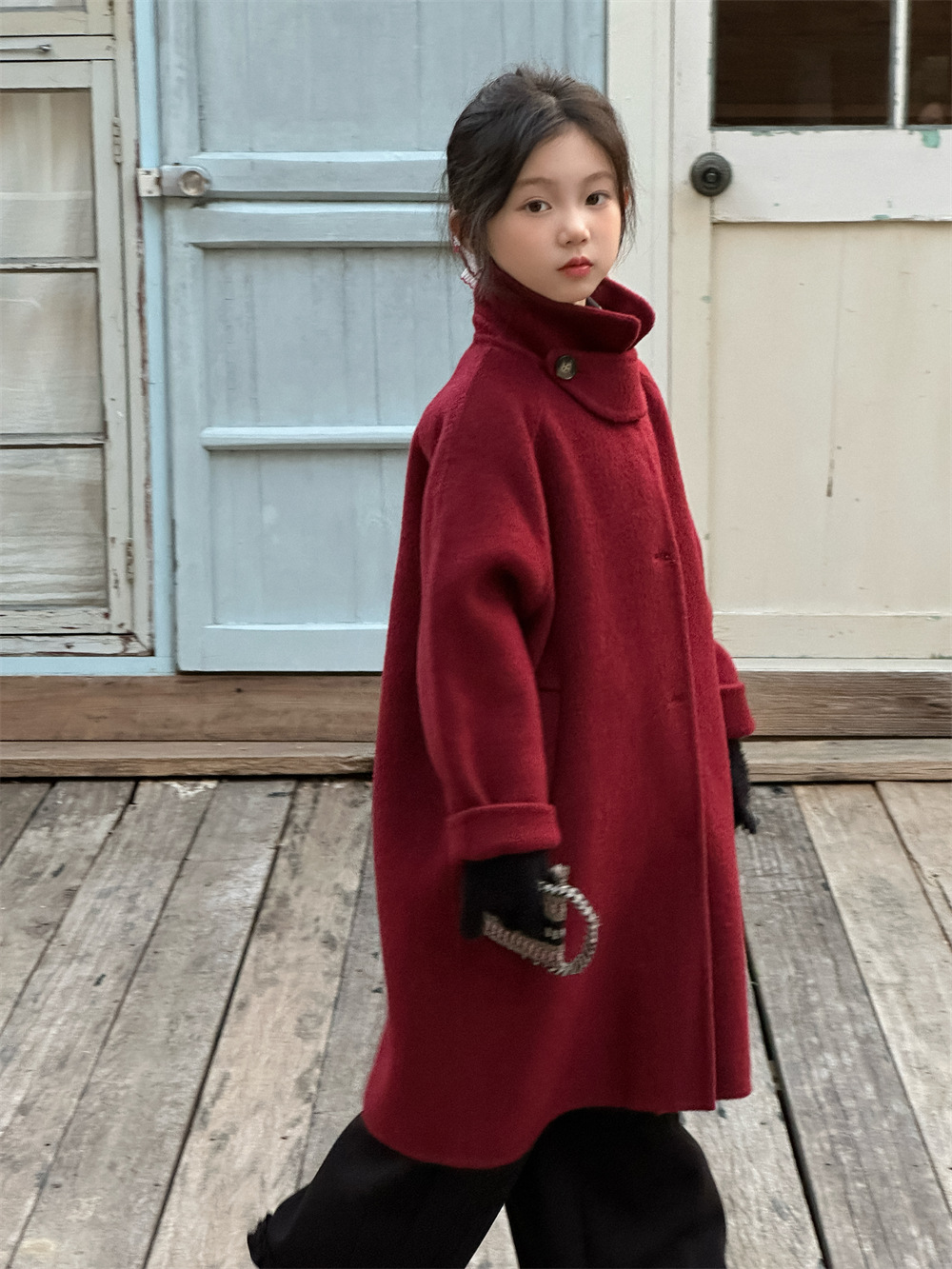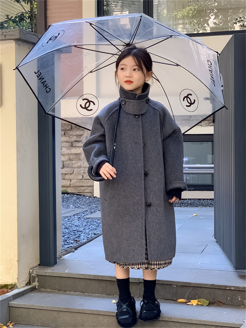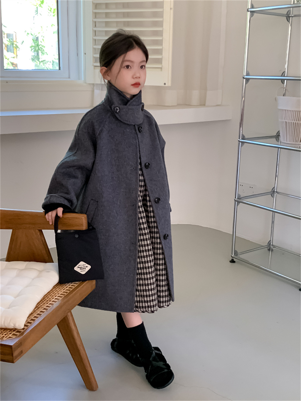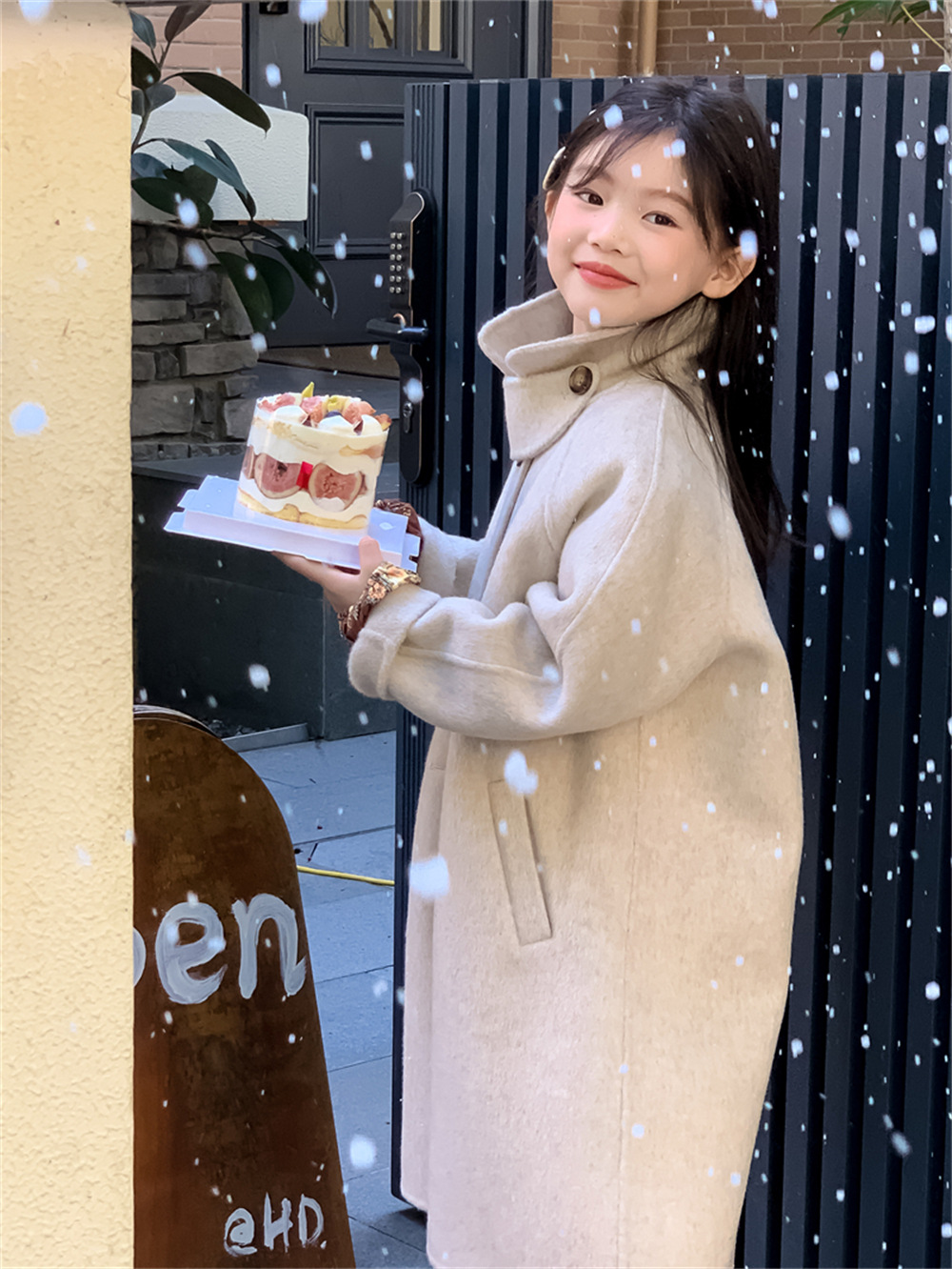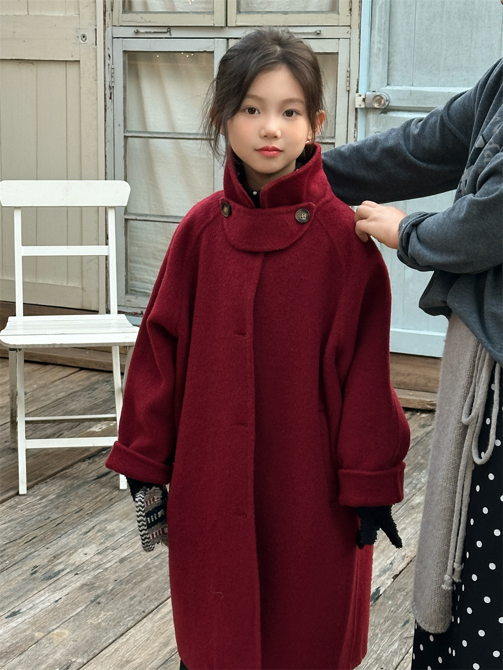 꽃과 찾는 아이 어린이 양면 양면 양모 코트 2024 신소녀 겨울 모직 코트 걸스 트렌디스토어 가기