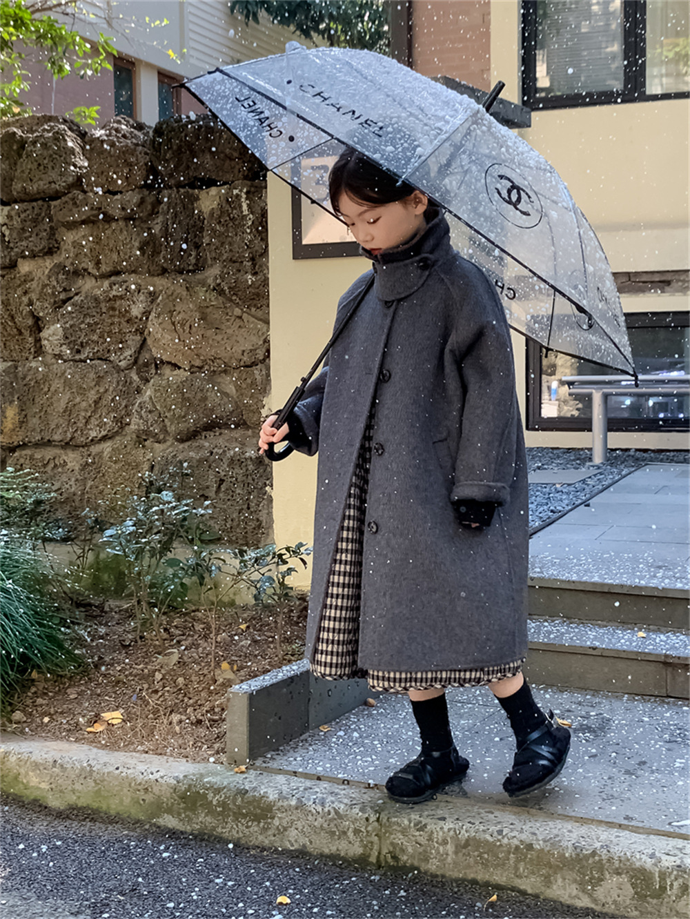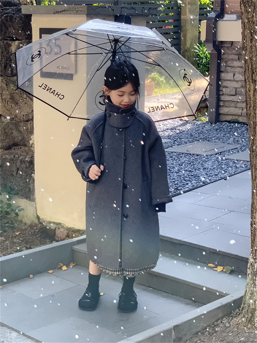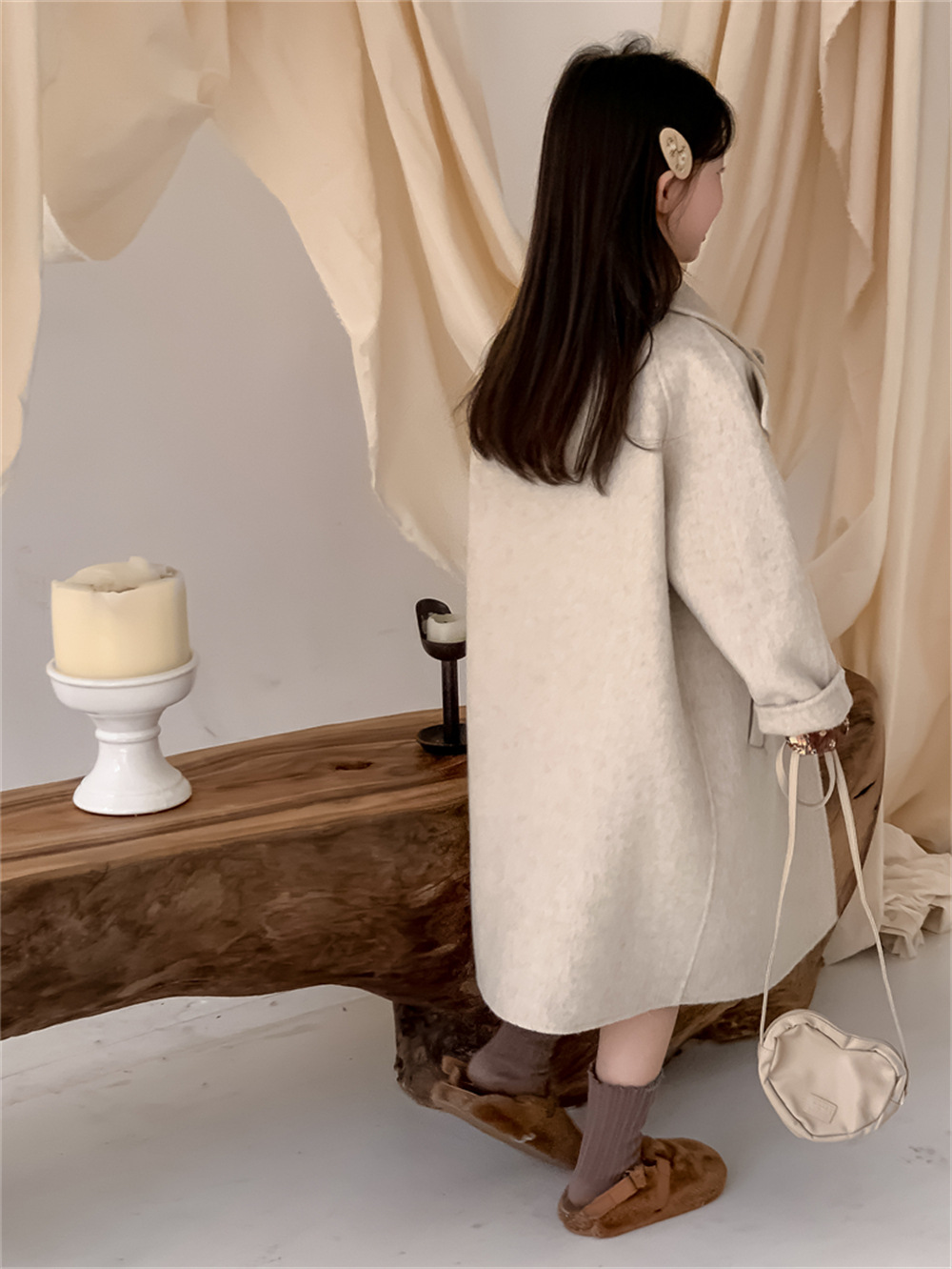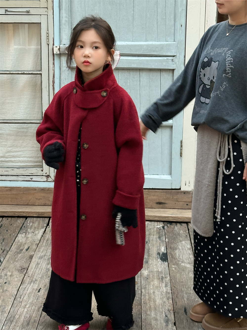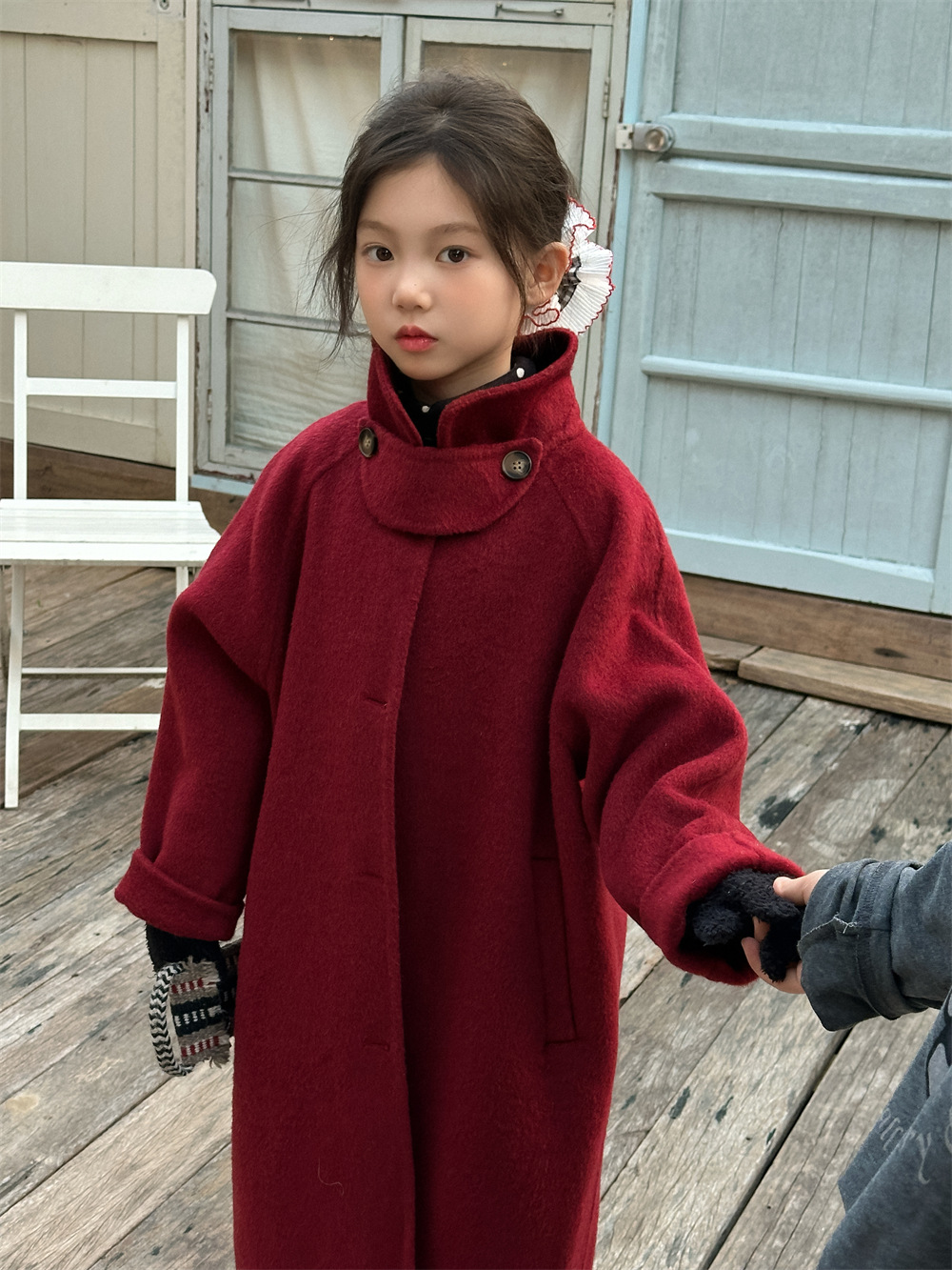 꽃과 찾는 아이 어린이 양면 양면 양모 코트 2024 신소녀 겨울 모직 코트 걸스 트렌디스토어 가기