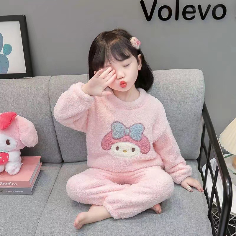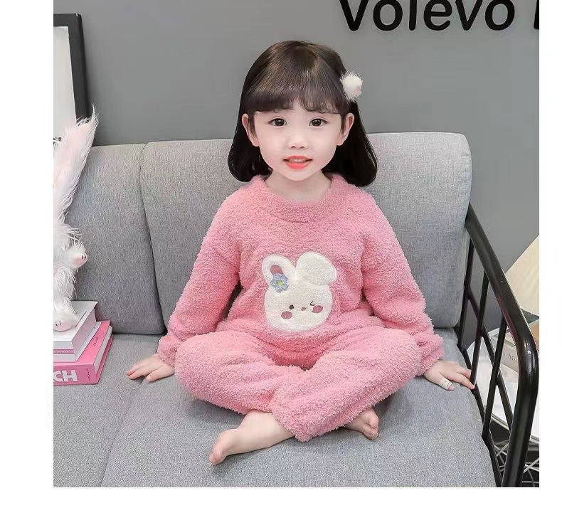 소녀의 플란넬 잠옷 가을과 겨울 어린이 둥근 목 기모 따뜻한 산호 양털 겨울 두꺼운 홈 옷 세트스토어 가기