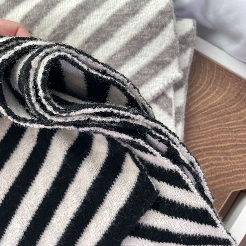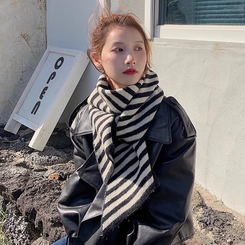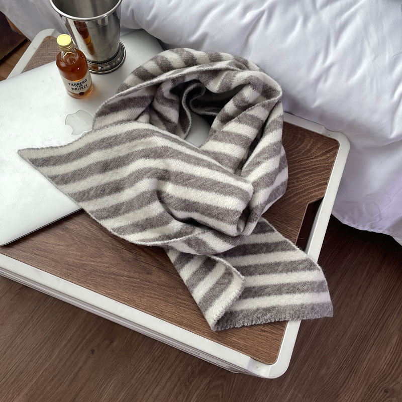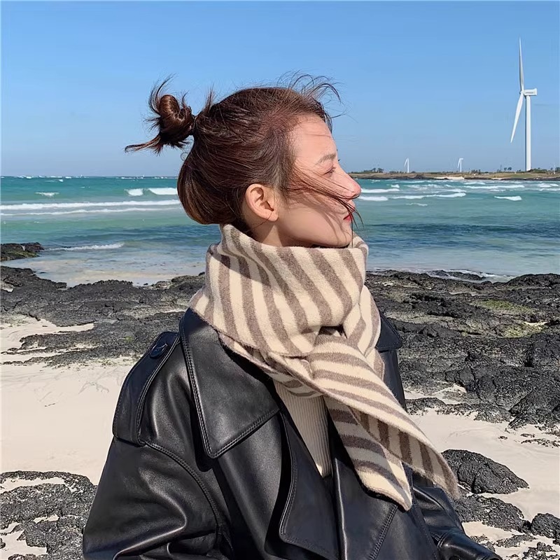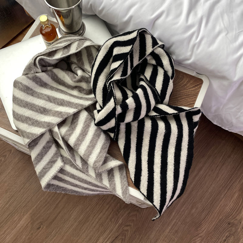 【어린이날 추천하지 않음】한국 수출 울 혼방 사선 스트라이프 스카프 한국 스타일 겨울 신상 커플용스토어 가기