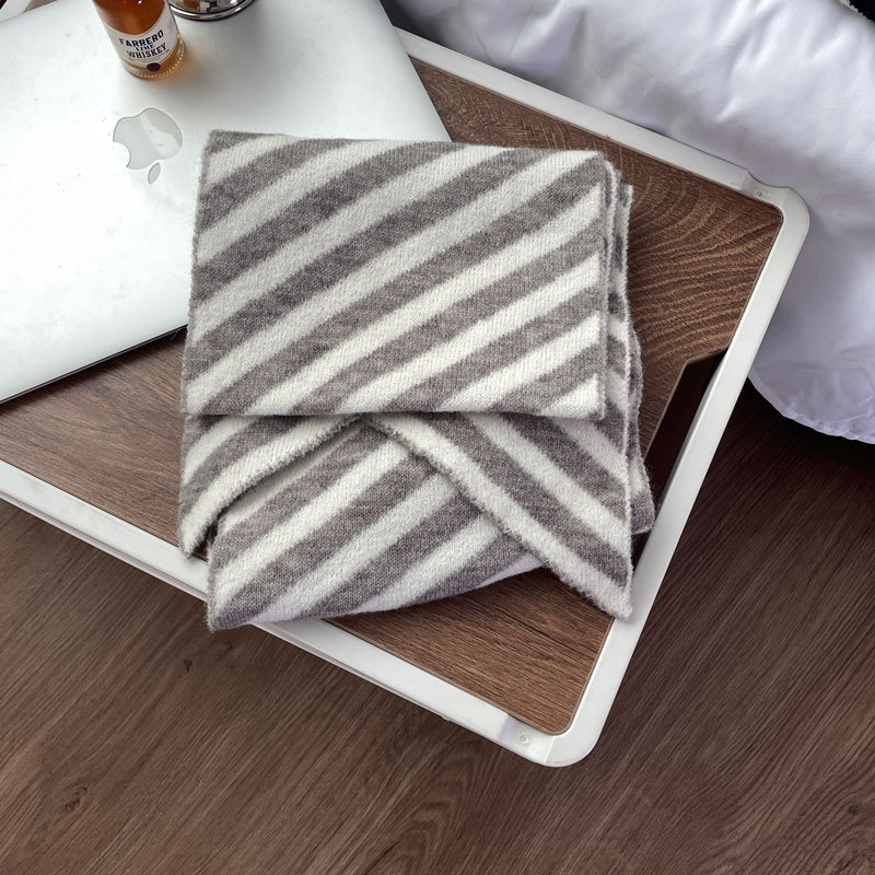 【어린이날 추천하지 않음】한국 수출 울 혼방 사선 스트라이프 스카프 한국 스타일 겨울 신상 커플용