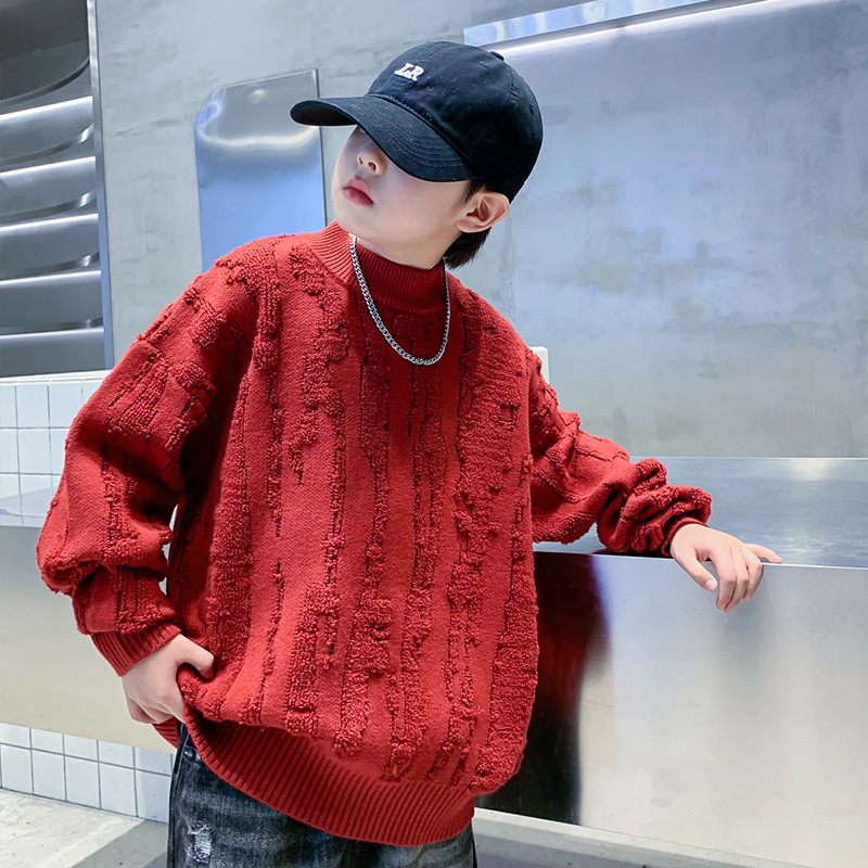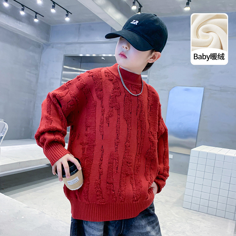남아용 빨간색 스웨터 가을 겨울 2025 신상 중대형 어린이 겨울용 플리스 니트웨어 남아용 두꺼운 설날 의상스토어 가기