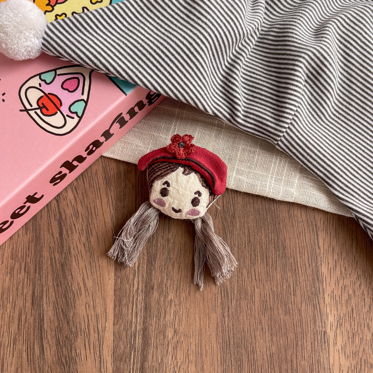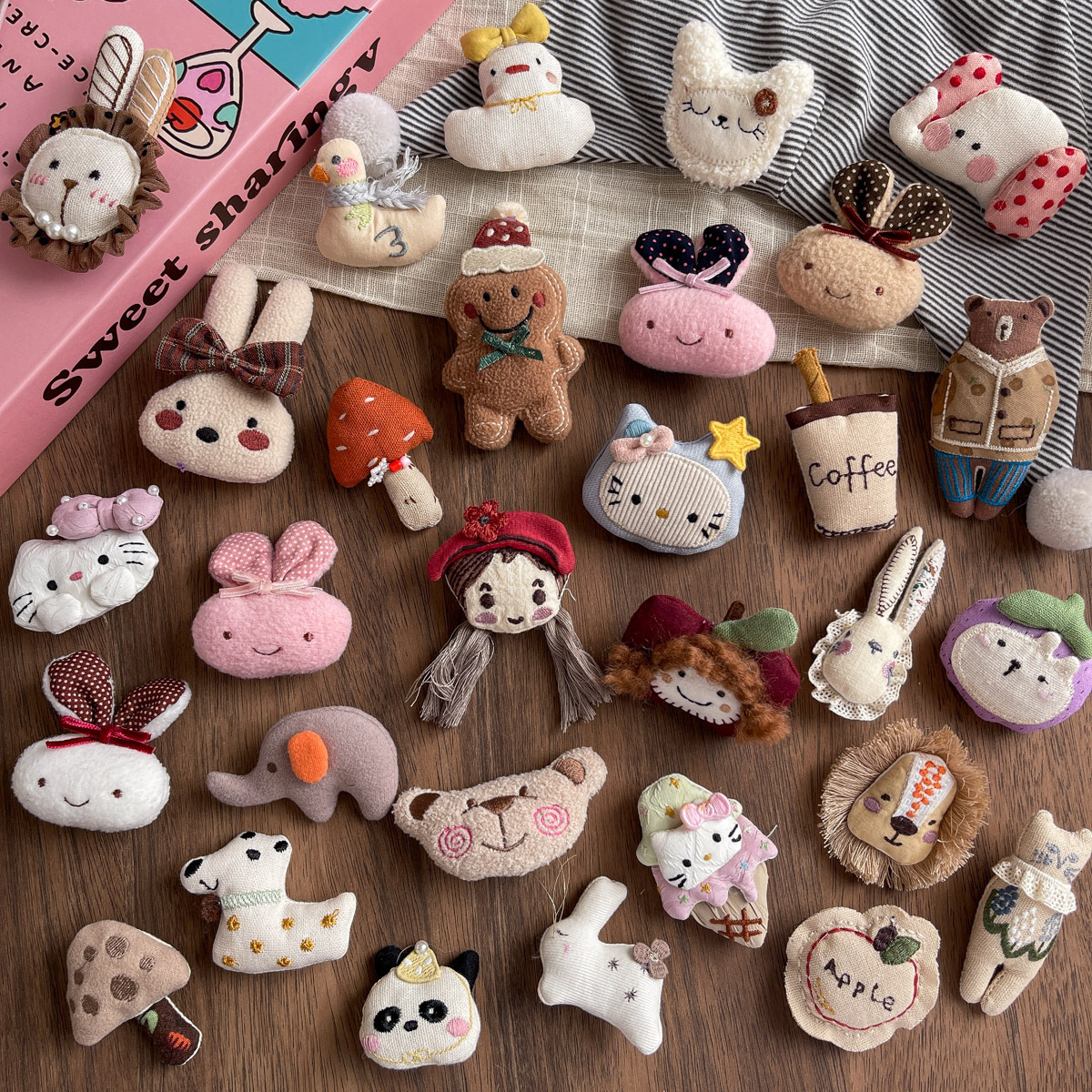 새로운 모리 코튼 리넨 원단 브로치 귀여운 작은 소녀 만화 간단한 바늘 모든 일치 직물 동물 소녀 액세서리스토어 가기
