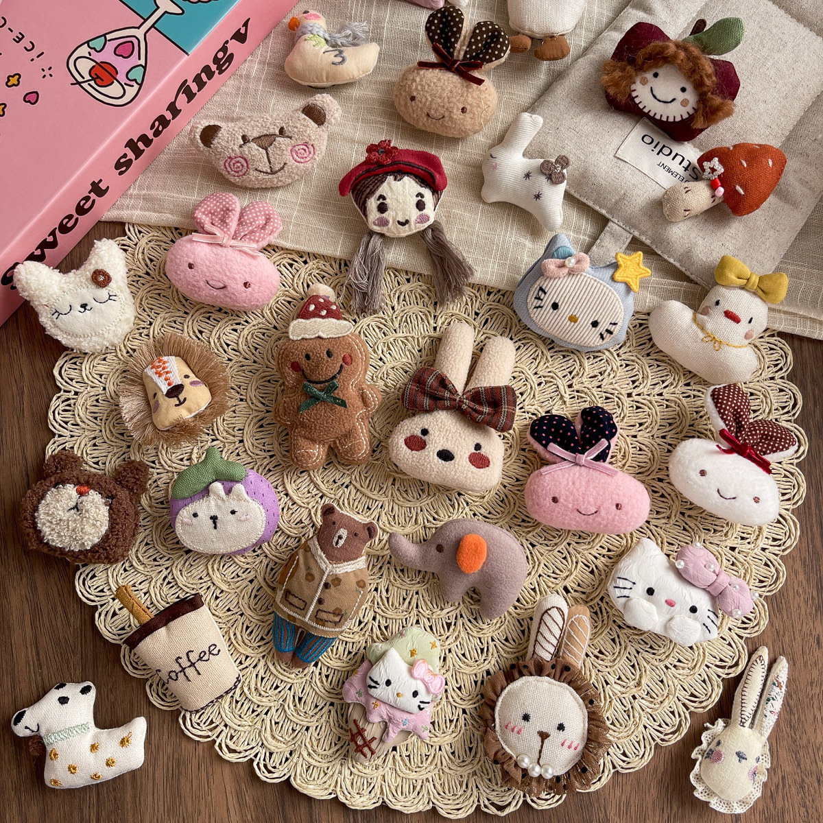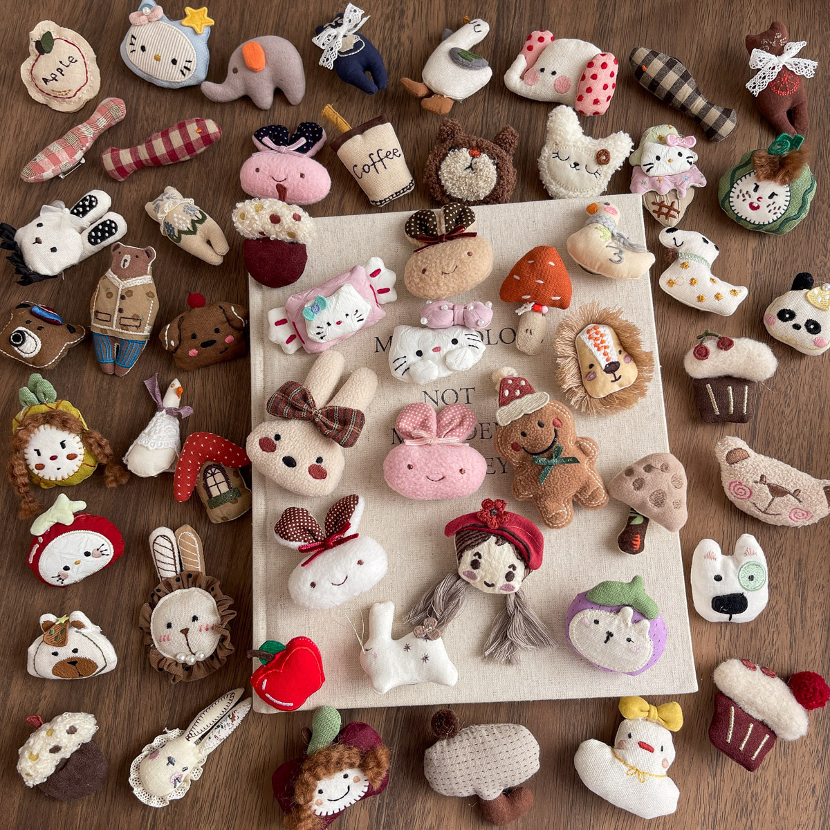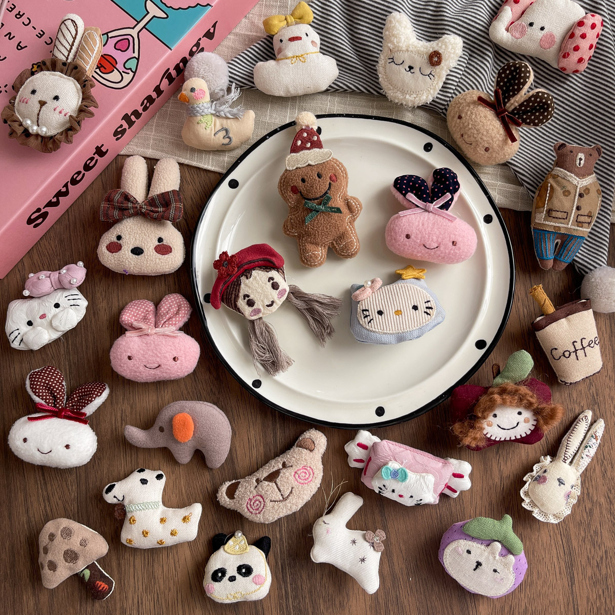 새로운 모리 코튼 리넨 원단 브로치 귀여운 작은 소녀 만화 간단한 바늘 모든 일치 직물 동물 소녀 액세서리