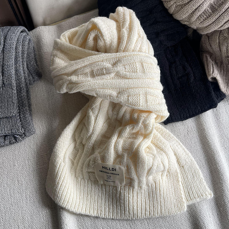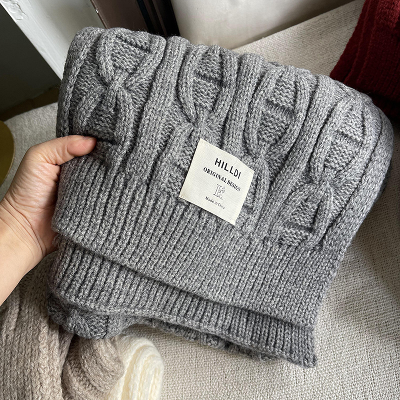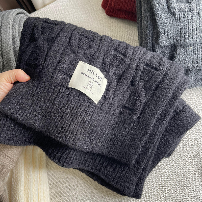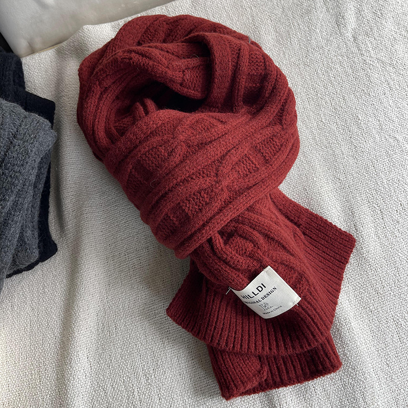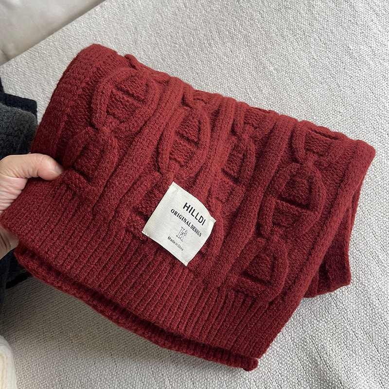 가을과 겨울 한국 스타일 분위기 따뜻한 붉은 트위스트 스카프 여성의 부드러운 두꺼운 감기 방지 목 니트 올 매치 스카프