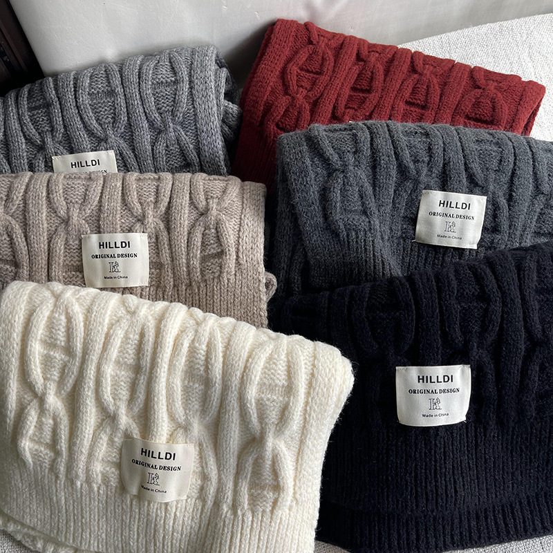가을과 겨울 한국 스타일 분위기 따뜻한 붉은 트위스트 스카프 여성의 부드러운 두꺼운 감기 방지 목 니트 올 매치 스카프스토어 가기