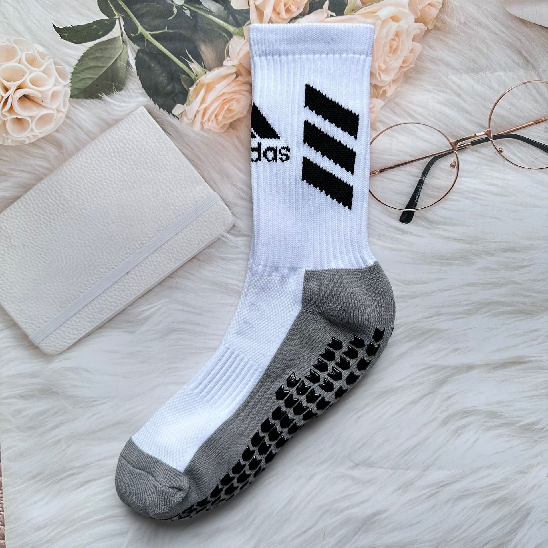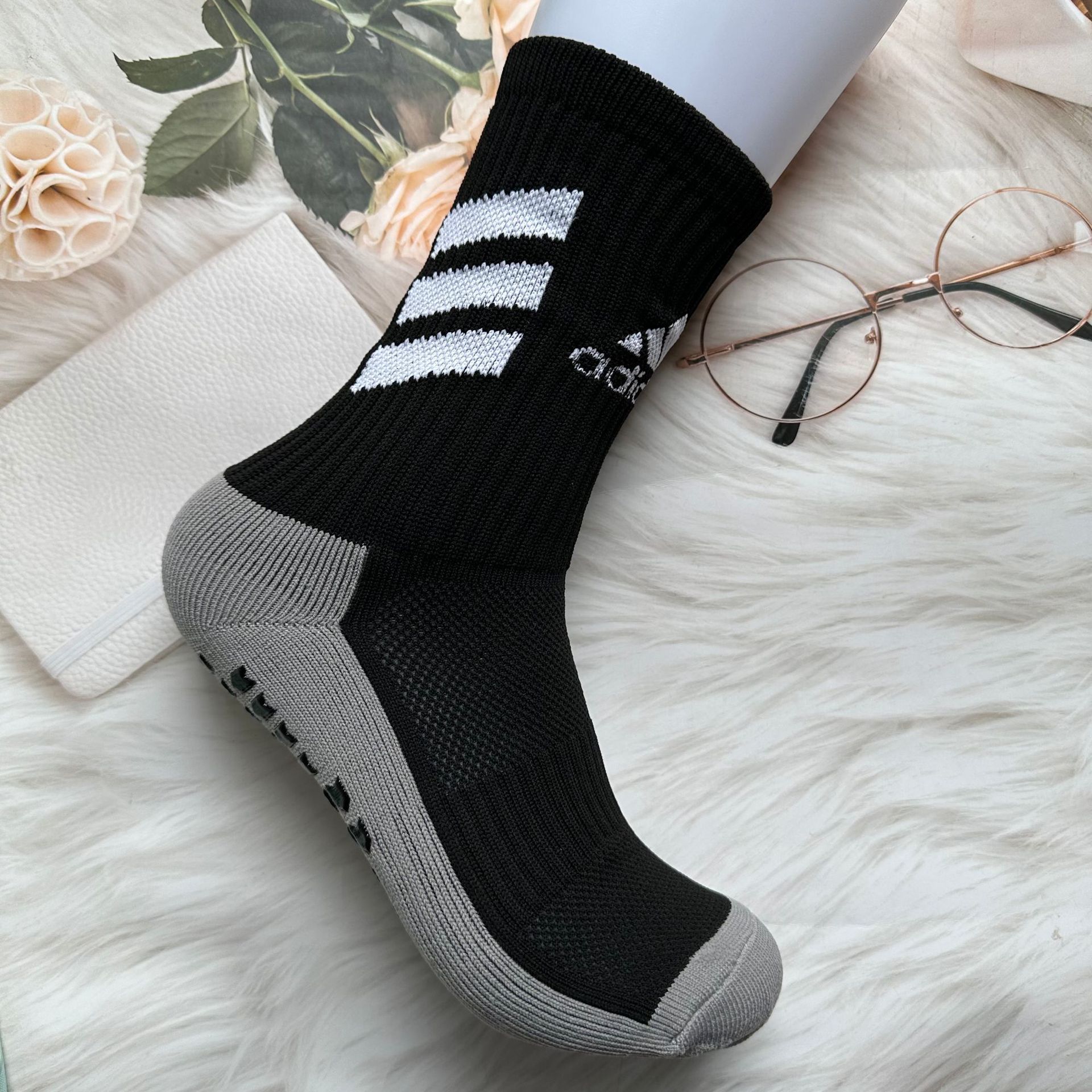 크로스보더 성인 축구 양말 중간 길이 화살표 스타일 수건 바닥 땀 흡수 및 탈취제 두꺼운 실리콘 미끄럼 방지 점선 양말 남성용