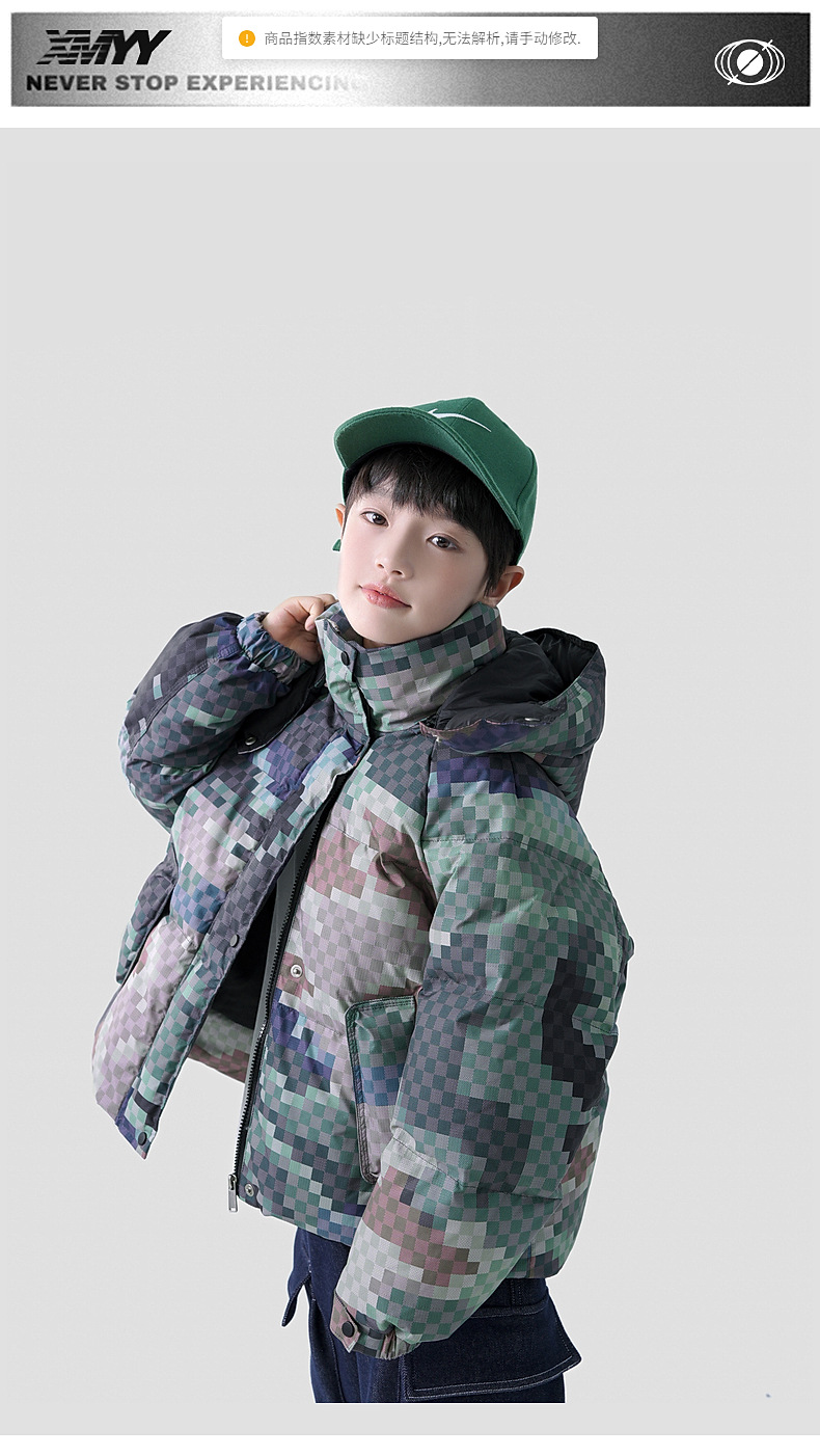 2025冬季新款男童潮酷温变羽绒服 儿童羽绒外套立领短款面包服