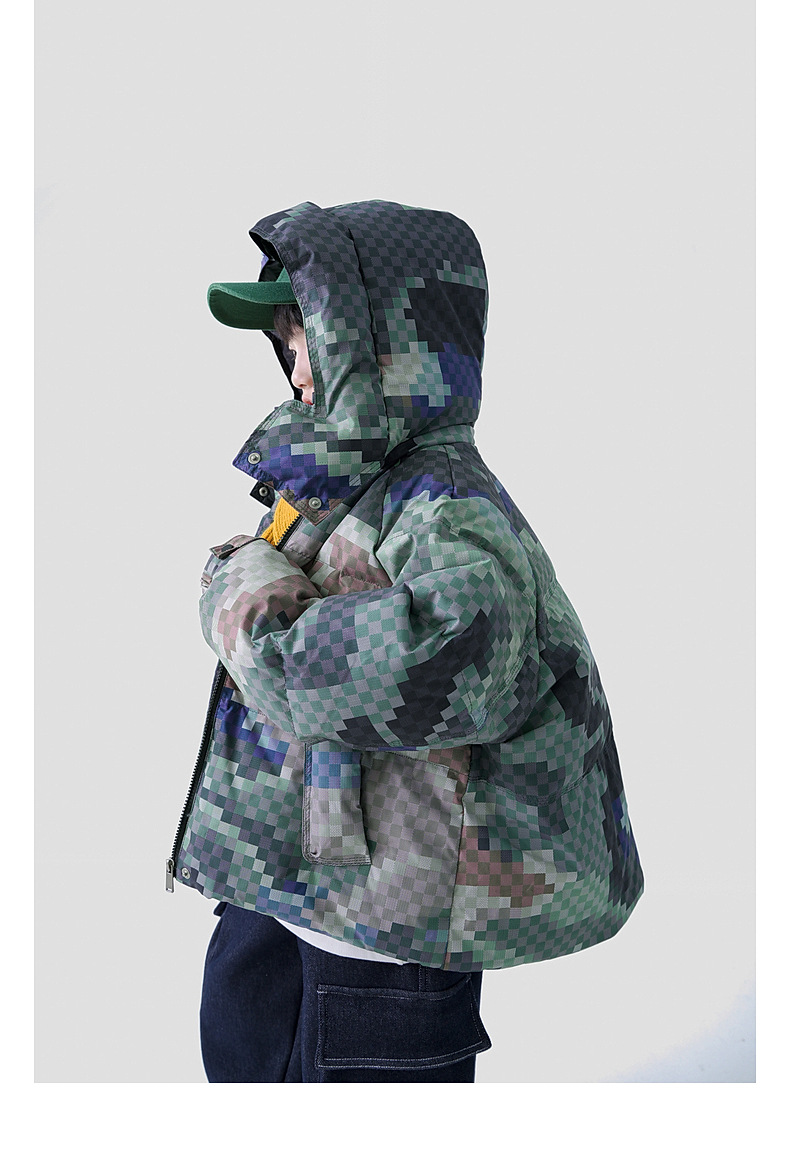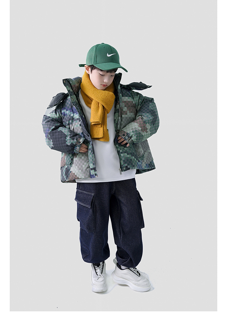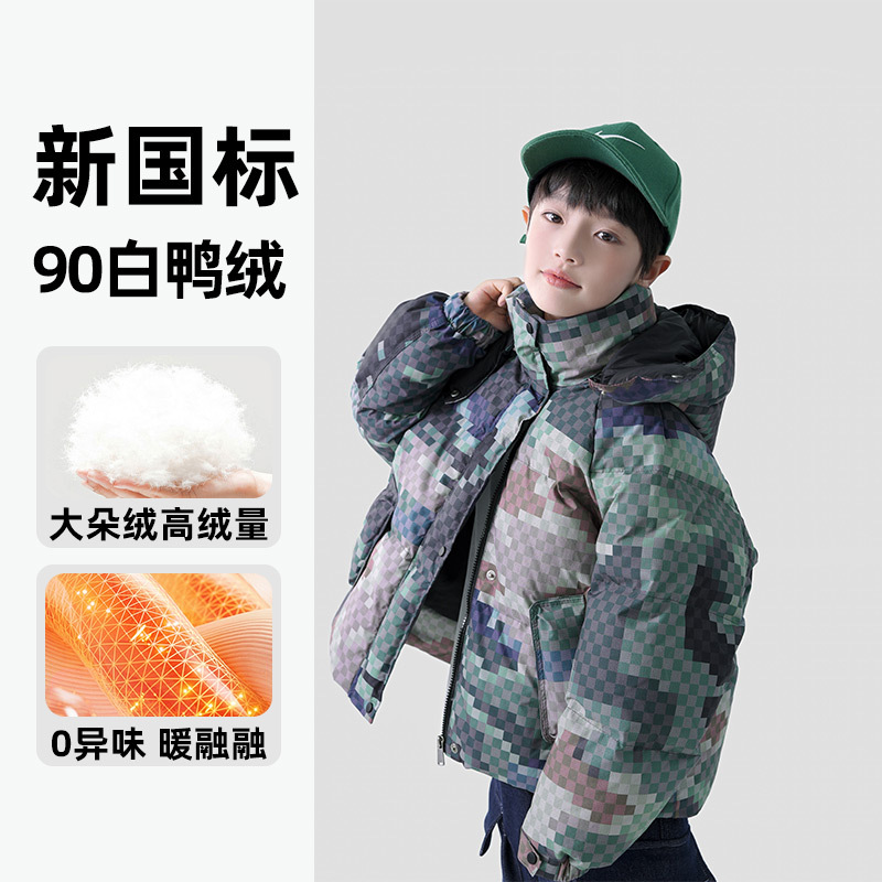 可溯源新国标90白鸭绒男童迷彩羽绒服短款2025冬装儿童羽绒棒球服
