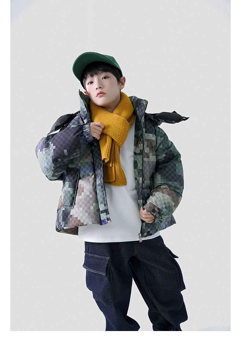 [마인크래프트] 신국가표준 90% 백오리털 고충전 아동용 다운 재킷 숏 스타일 방수 남아용 패딩