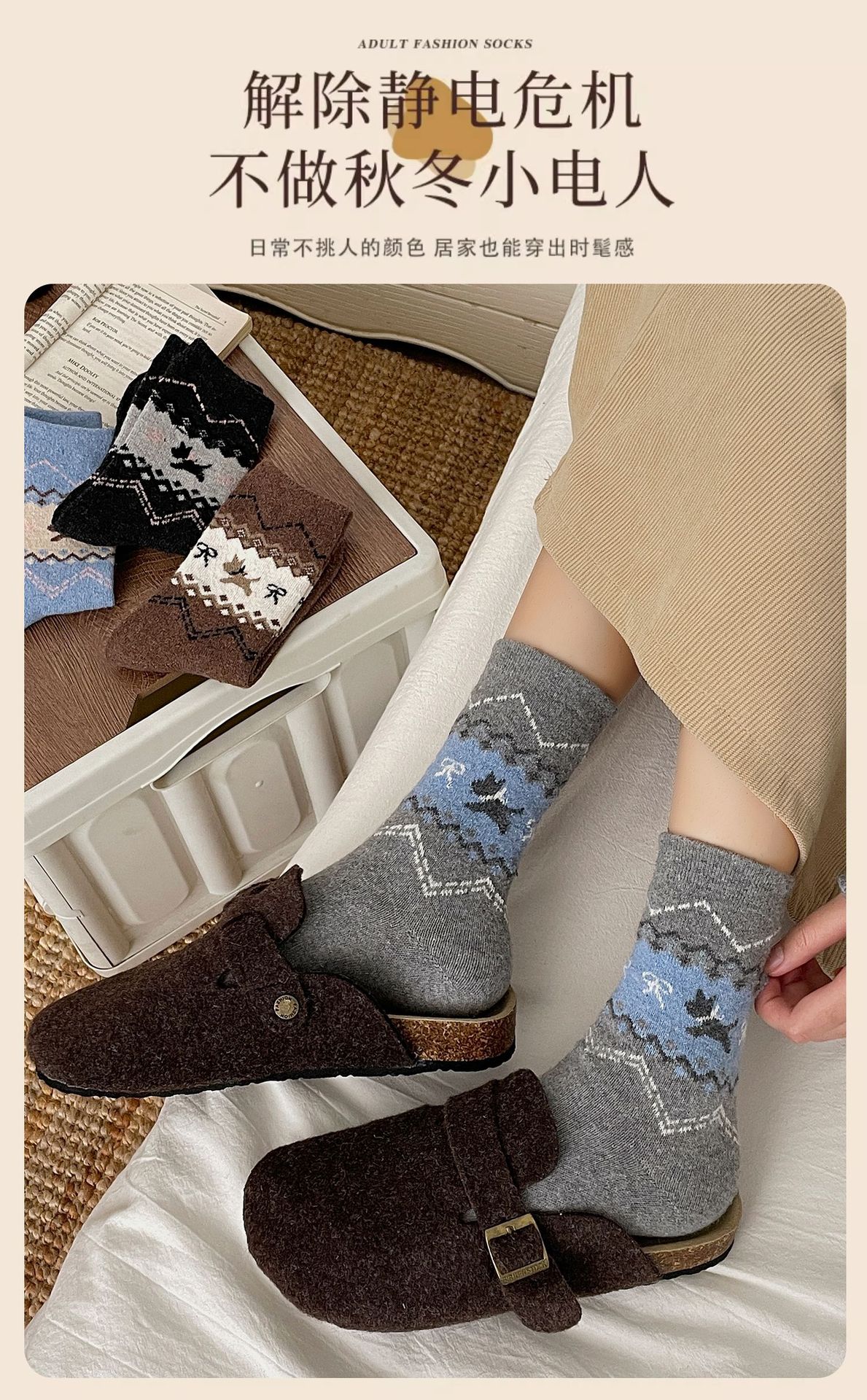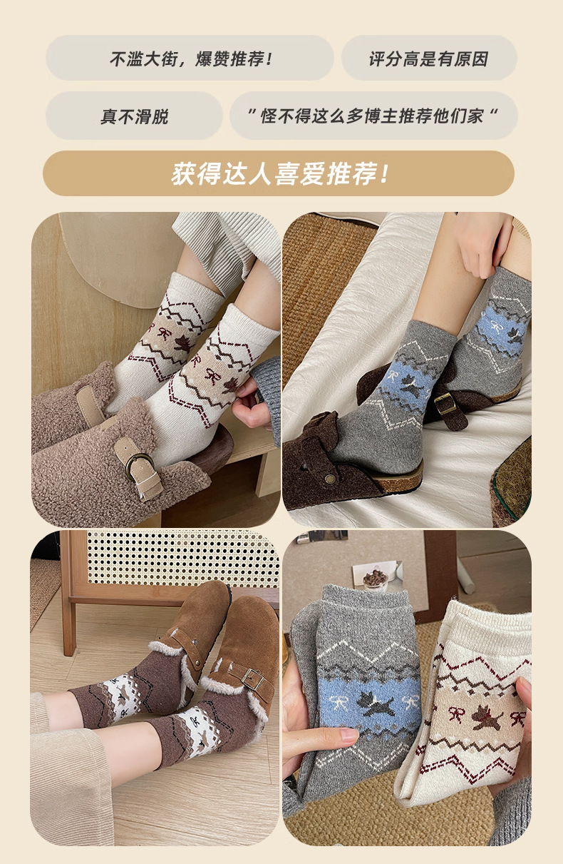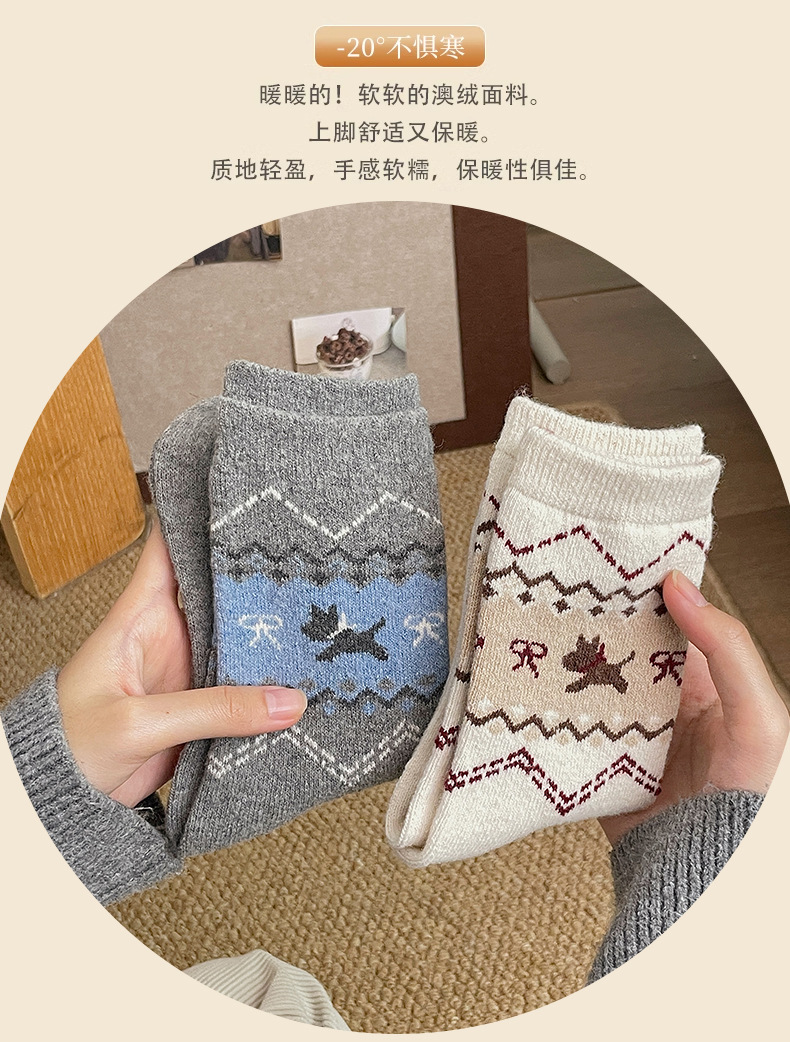 어린이를위한 페어랜드 강아지 양모 양말 빈티지 민족 스타일 가을과 겨울 중간 튜브 양말 버켄 스톡 신발과 함께 두꺼운 따뜻한 겨울