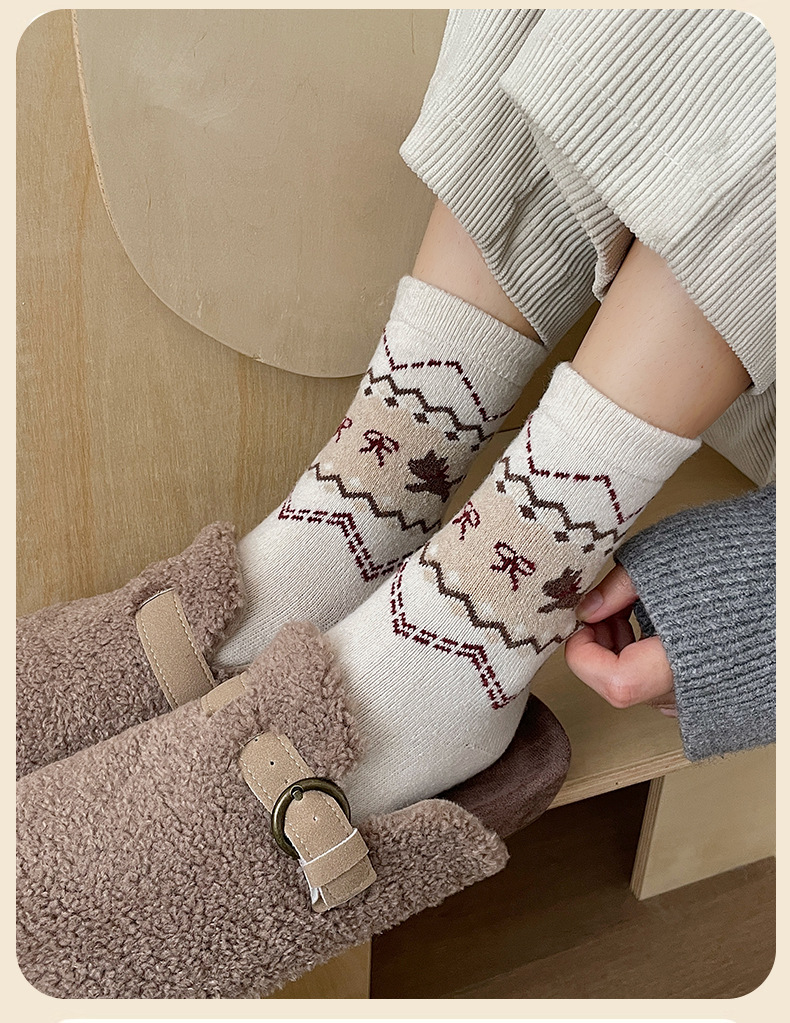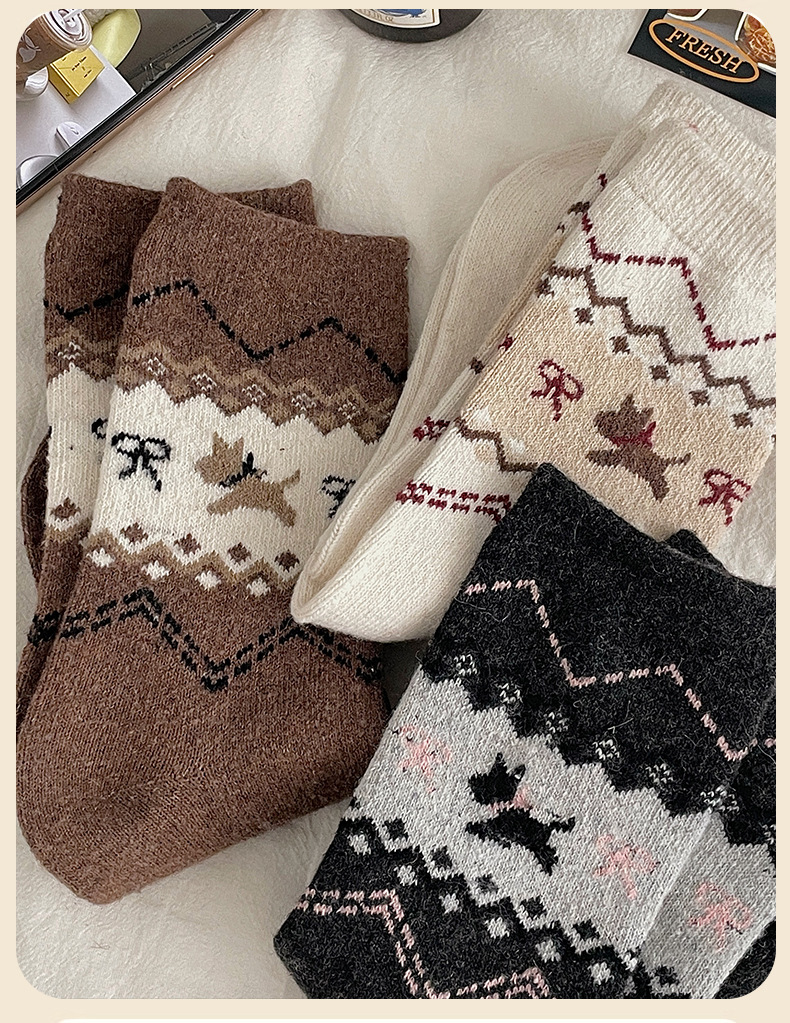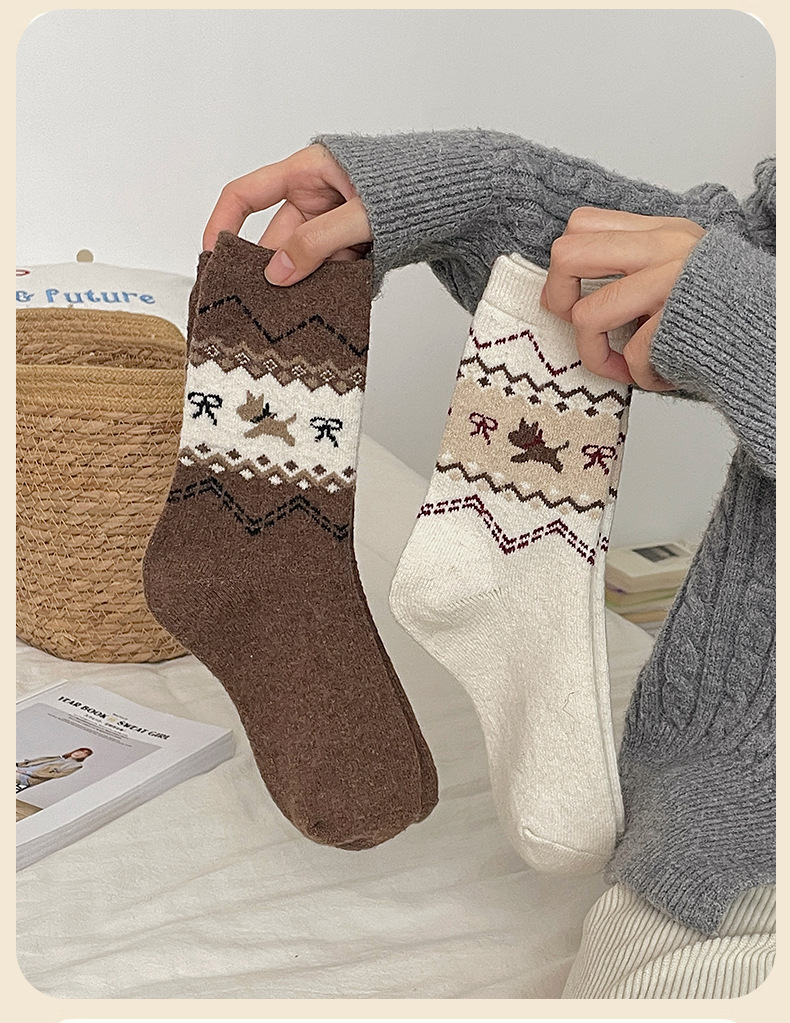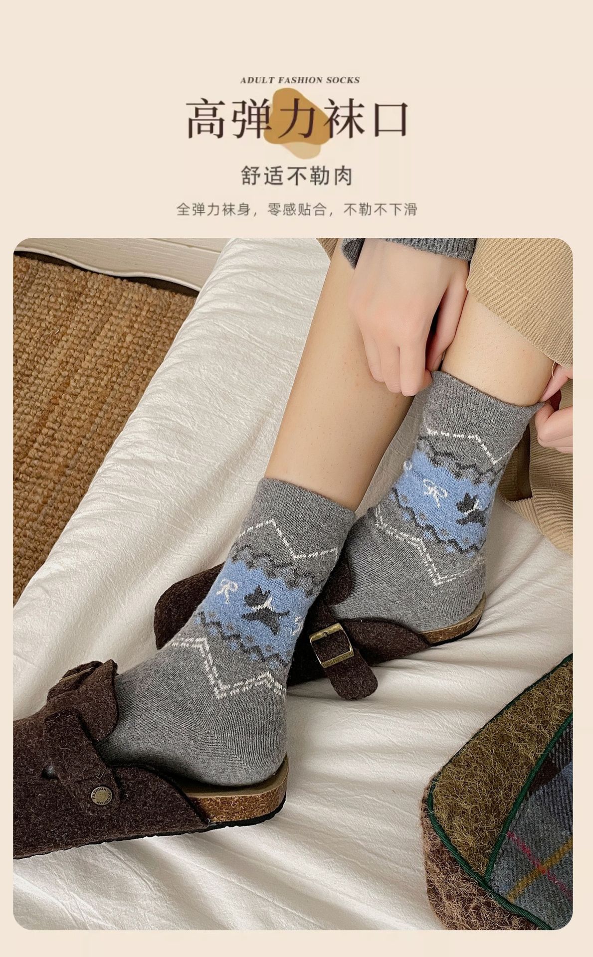어린이를위한 페어랜드 강아지 양모 양말 빈티지 민족 스타일 가을과 겨울 중간 튜브 양말 버켄 스톡 신발과 함께 두꺼운 따뜻한 겨울
