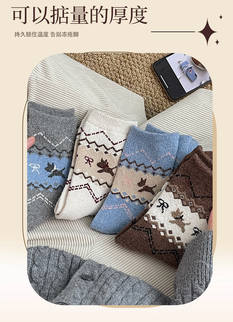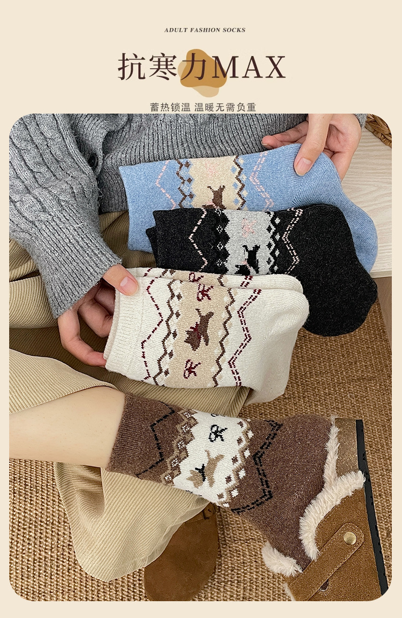 어린이를위한 페어랜드 강아지 양모 양말 빈티지 민족 스타일 가을과 겨울 중간 튜브 양말 버켄 스톡 신발과 함께 두꺼운 따뜻한 겨울스토어 가기