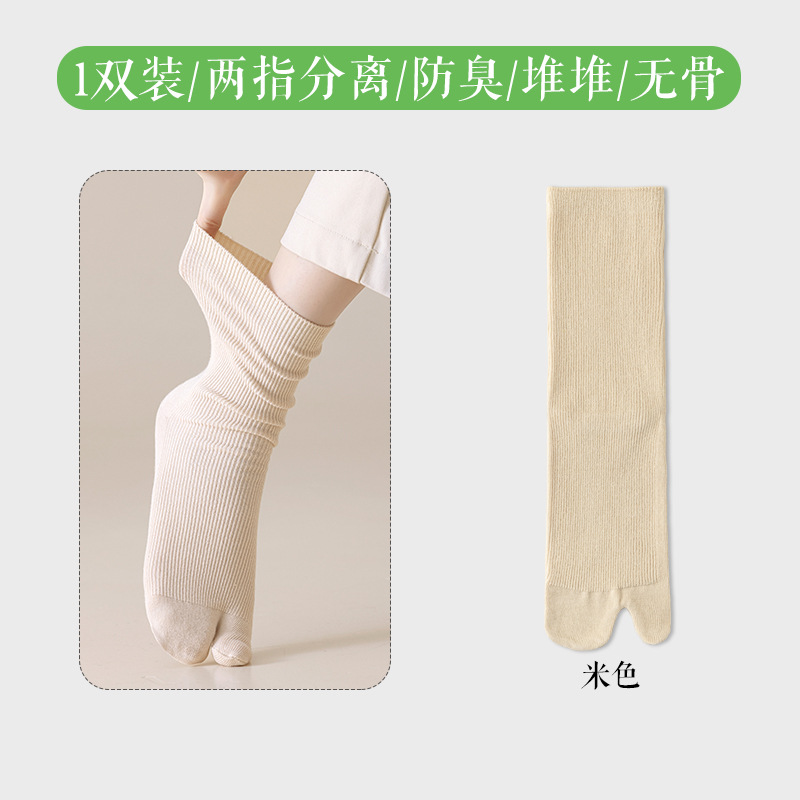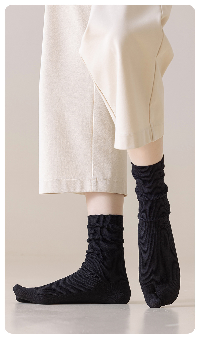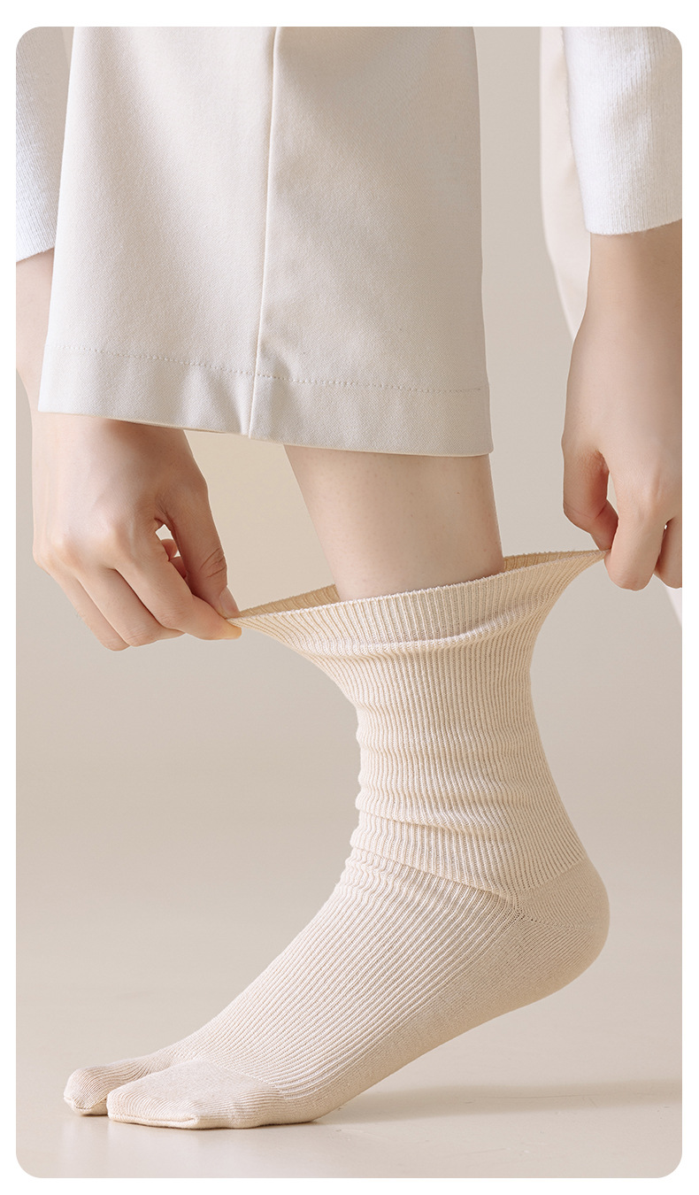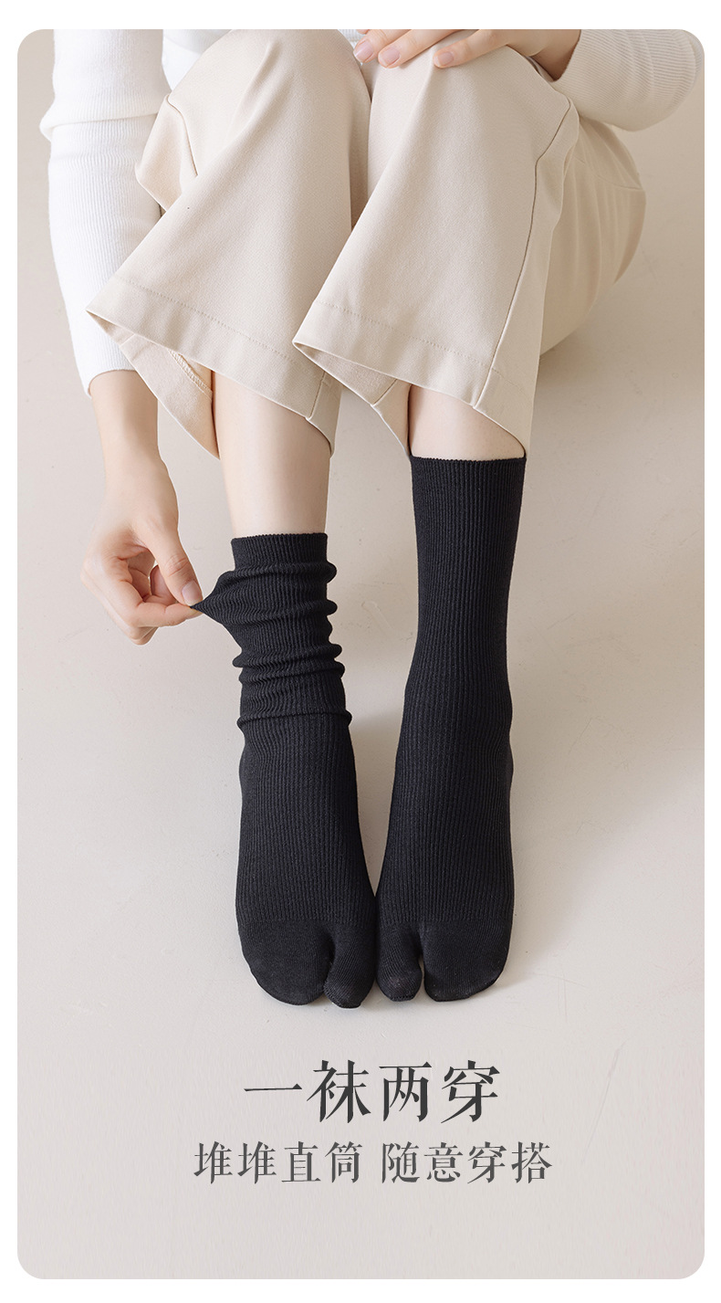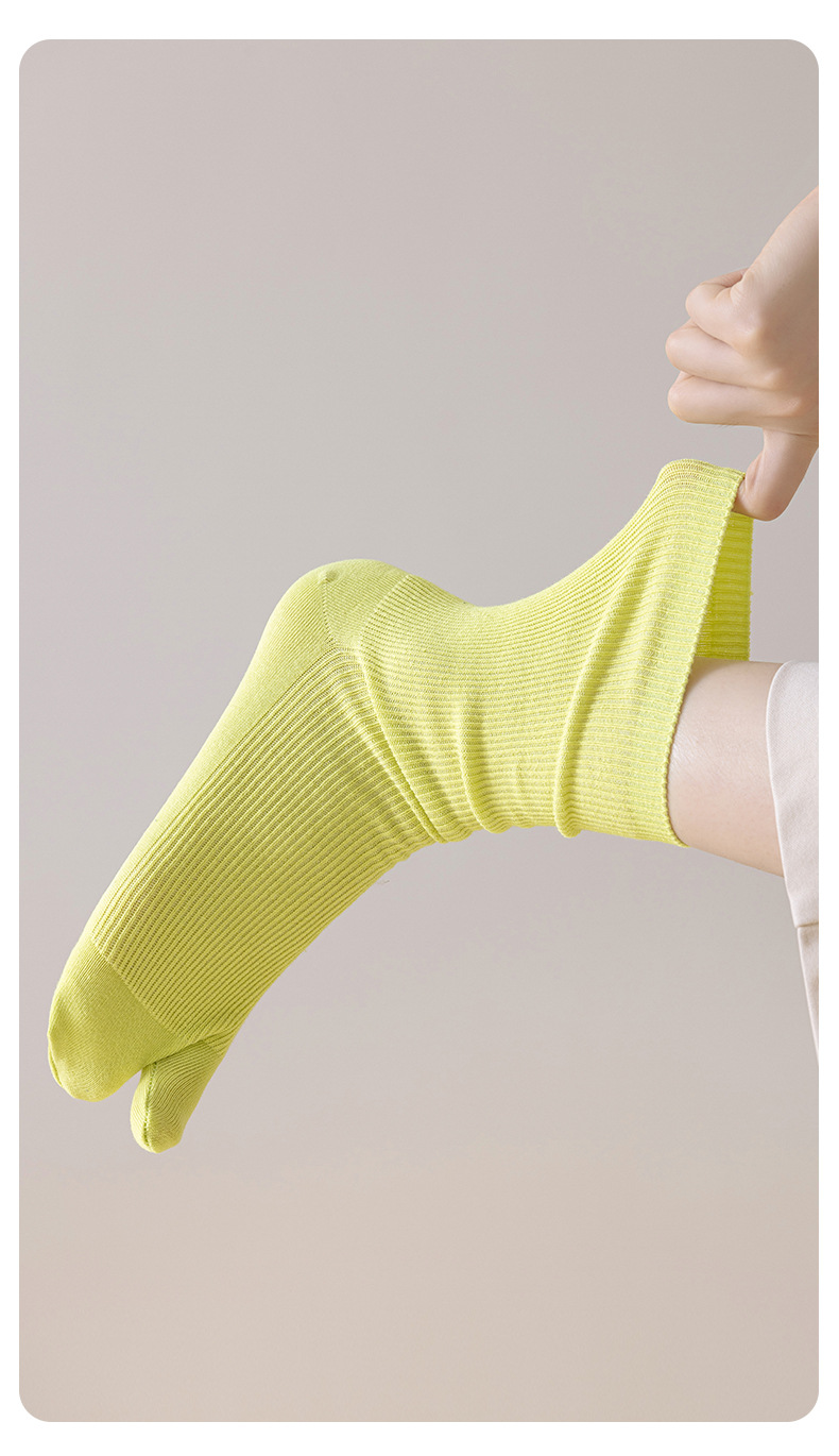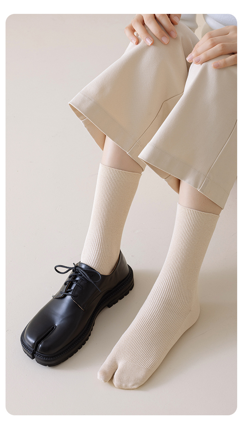 봄, 가을 여성용 스플릿 토 양말, 단색 스트라이프 기본 2발가락 양말, 다용도 통기성 파일 양말, 가을 겨울 엄지 양말스토어 가기