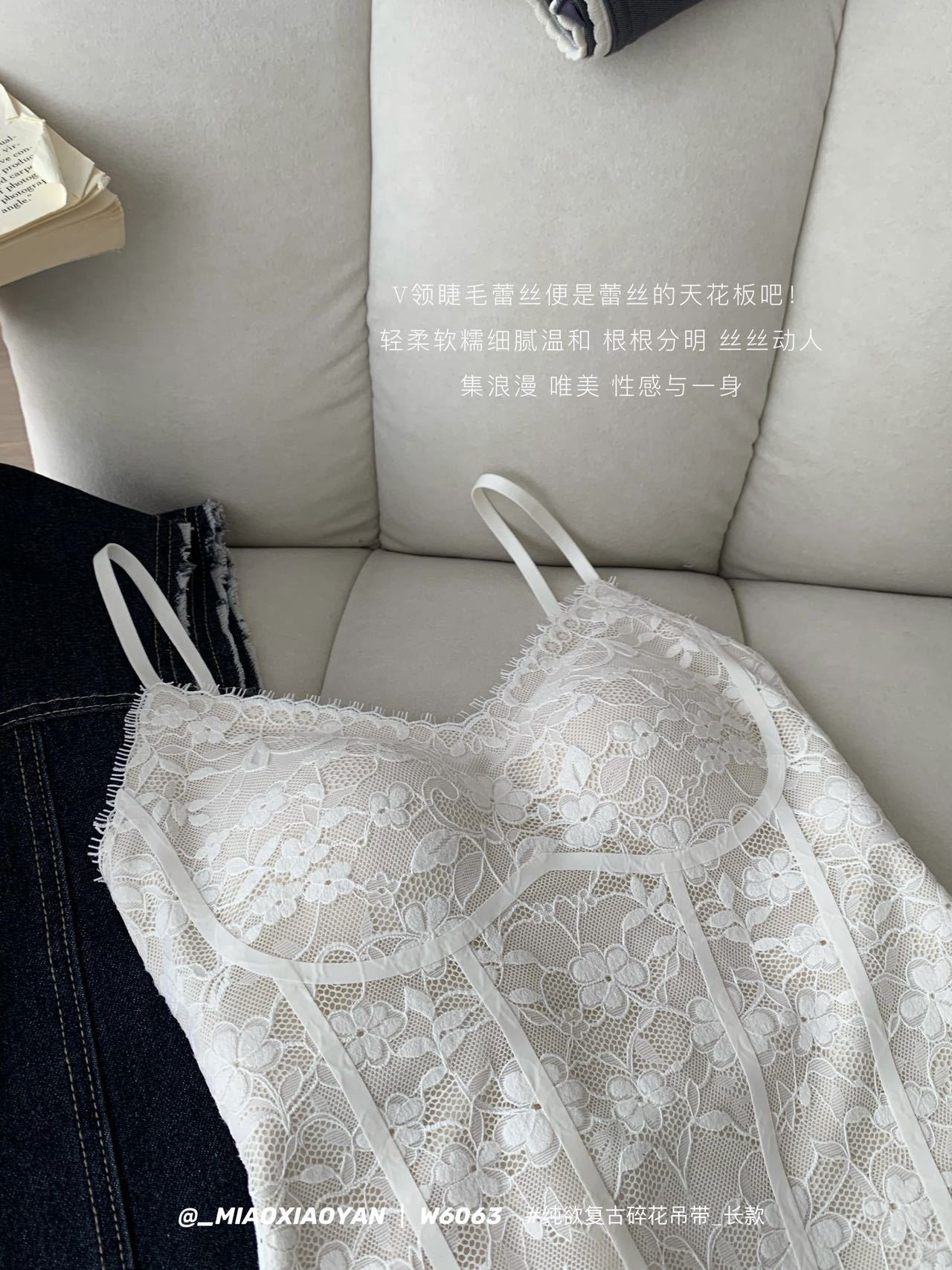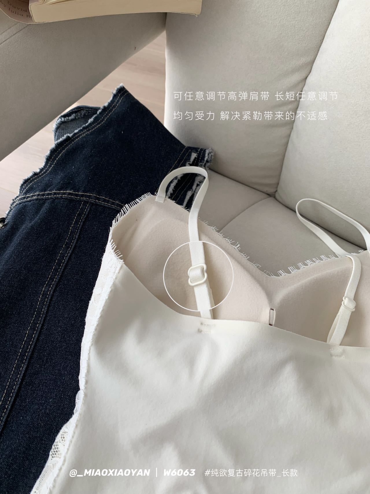 가을 겨울 기모 레트로 레이스 슬립 6063 다용도 편안한 패드 내장 고정컵 슬립 아름다운 등라인 해외 무역스토어 가기