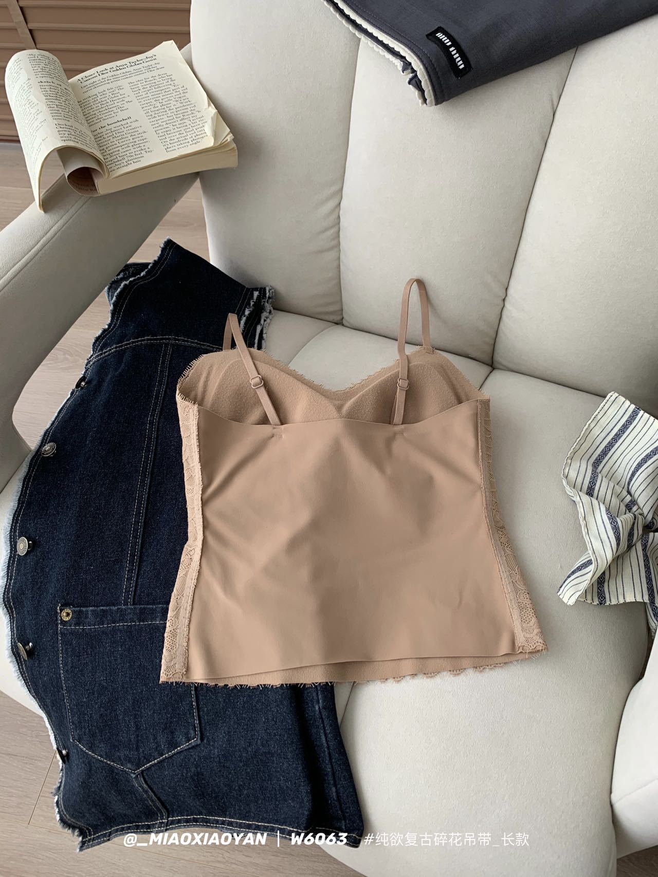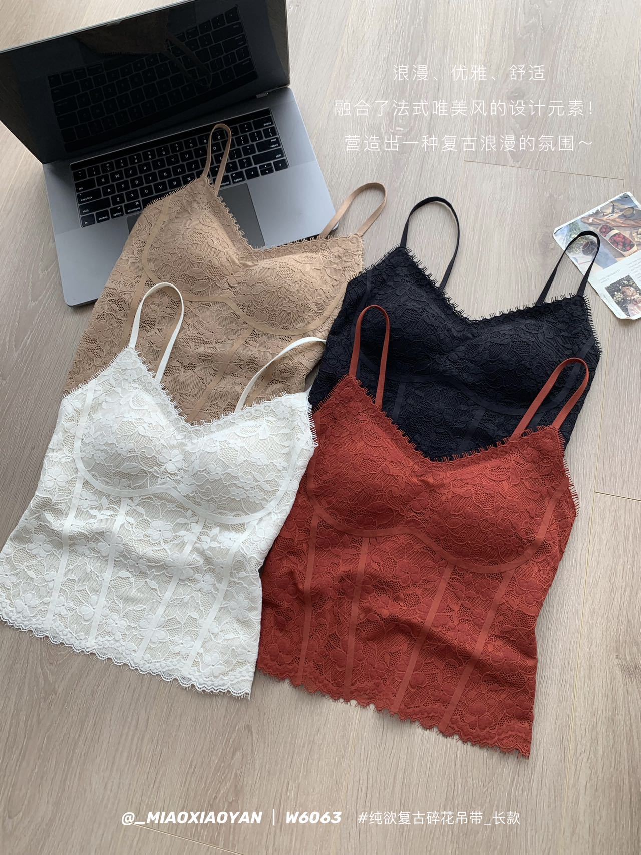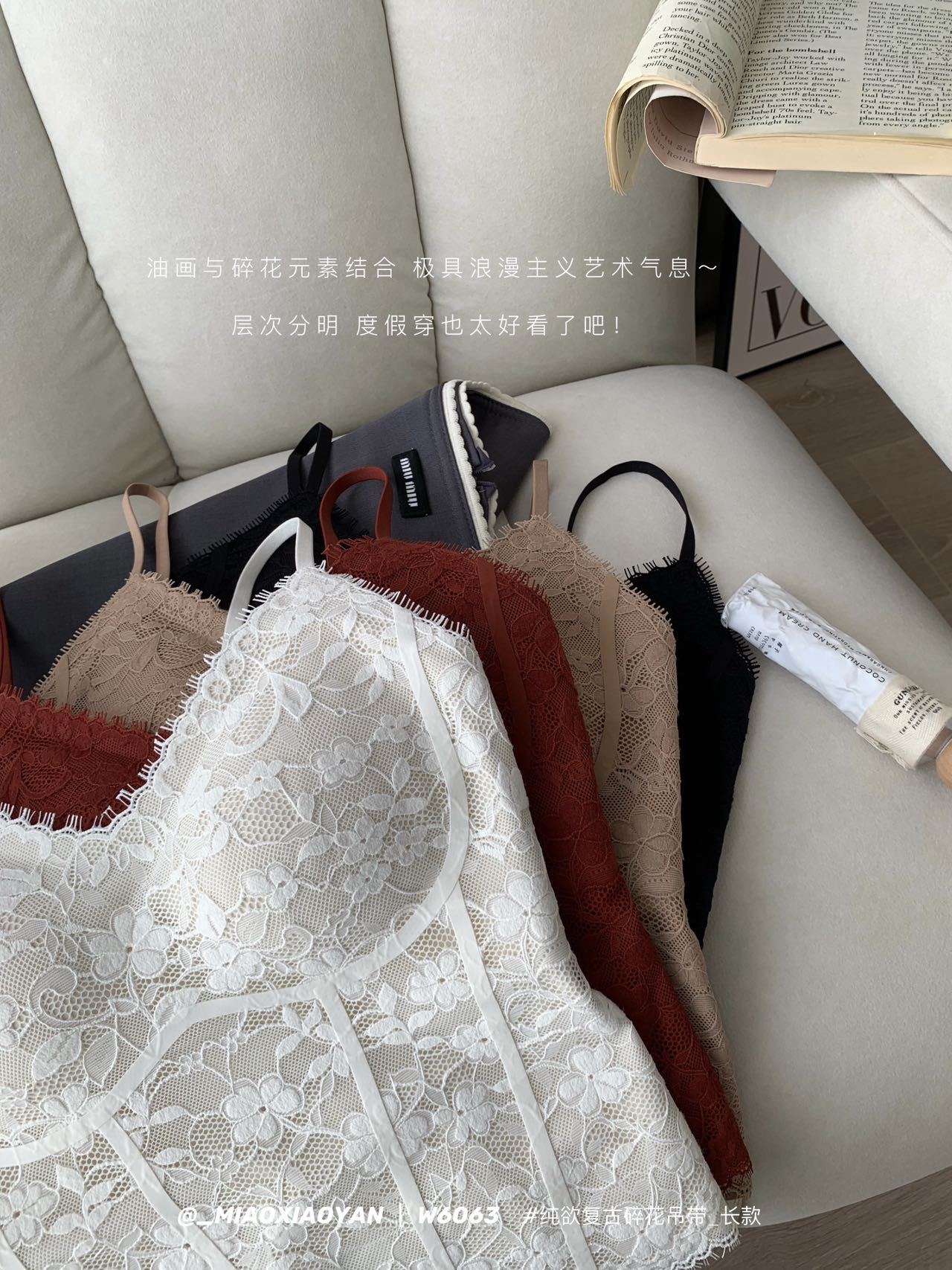 가을 겨울 기모 레트로 레이스 슬립 6063 다용도 편안한 패드 내장 고정컵 슬립 아름다운 등라인 해외 무역