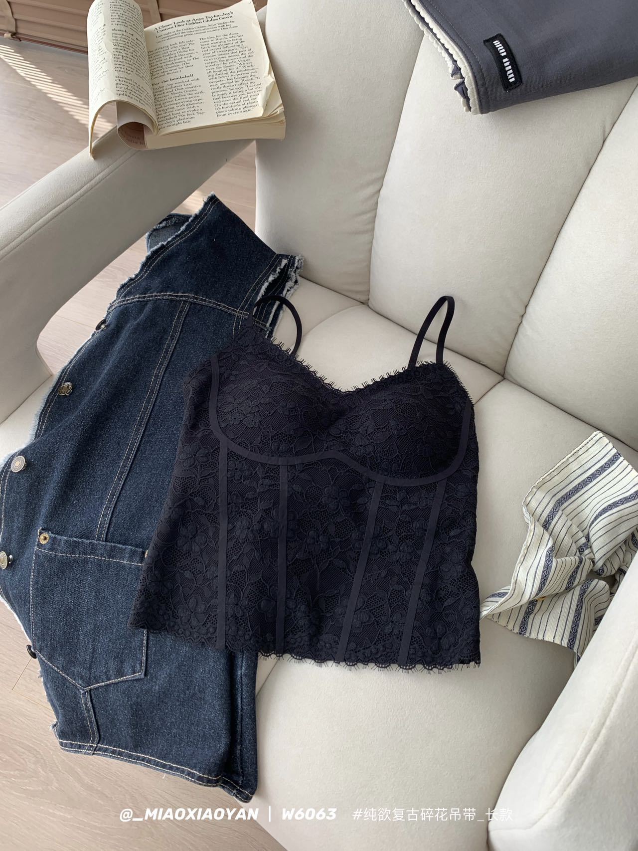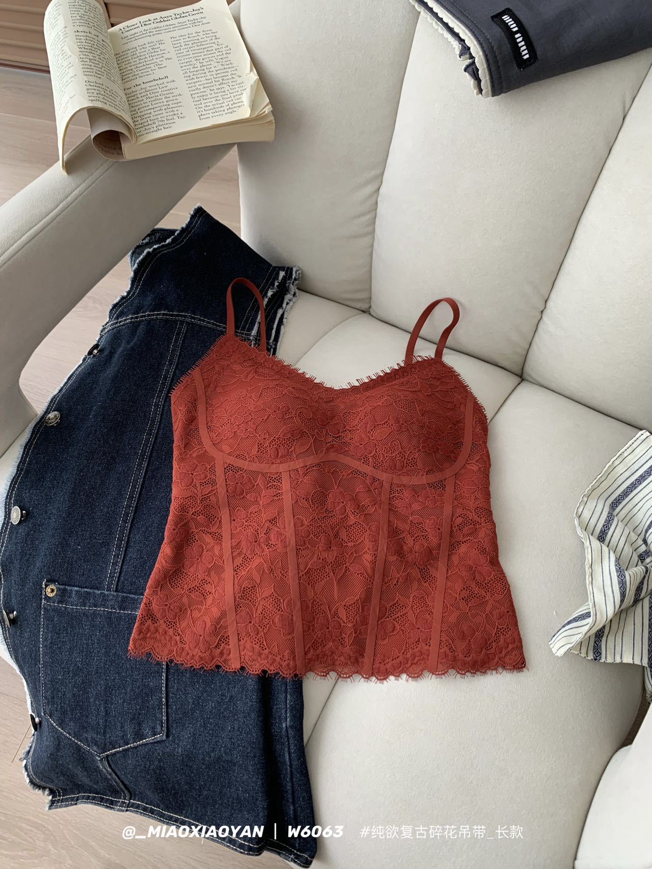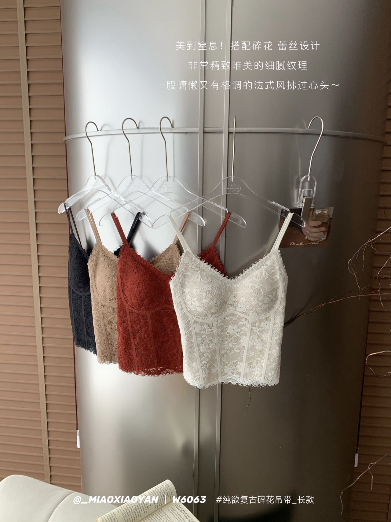 가을 겨울 기모 레트로 레이스 슬립 6063 다용도 편안한 패드 내장 고정컵 슬립 아름다운 등라인 해외 무역