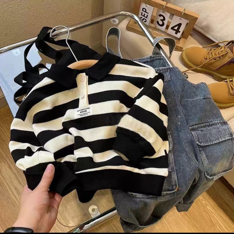 어린이 봄 가을 줄무늬 스웨트셔츠 아기 2025 겨울 신상 스타일리시 남녀공용 긴팔 폴로 셔츠 카라 탑스토어 가기