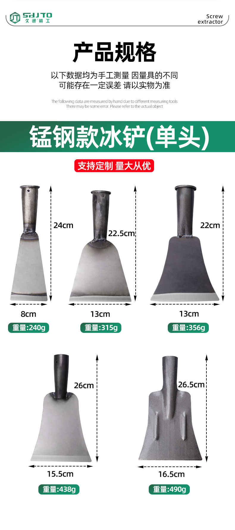 • 500, 대형 얼음 삽 헤드(단일 헤드), 70/개, 0.44kg