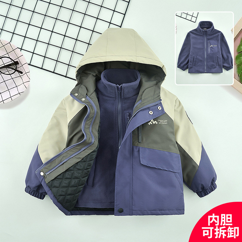 소년 재킷 겨울 2025 새로운 어린이 재킷 3-in-1 분리형 소년 플러스 벨벳 및 면 봄, 가을, 겨울