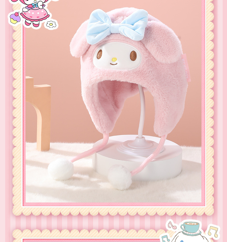 소년 소녀를위한 산리오 어린이 모자 가을과 겨울 3-10 세 만화 따뜻한 모자 어린이 귀 보호 모자 매달려 볼 캡
