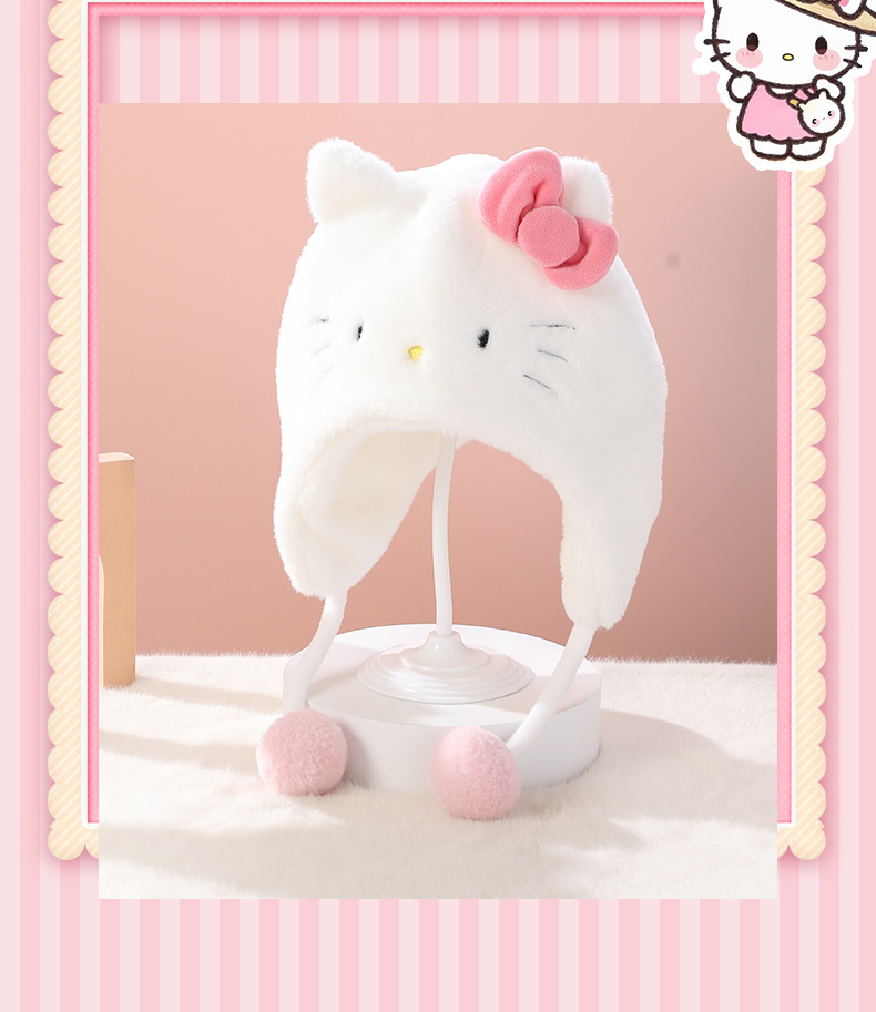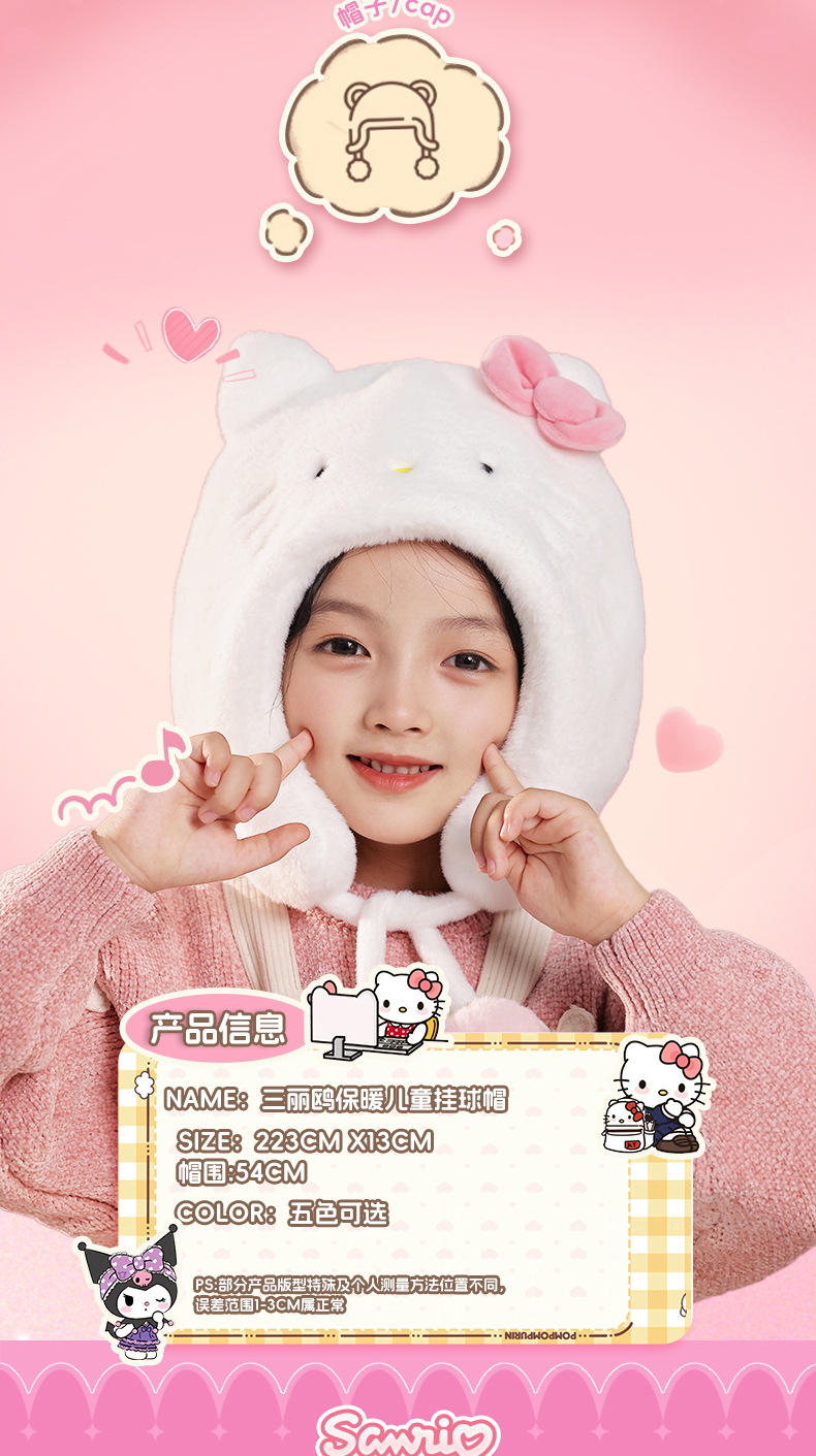 소년 소녀를위한 산리오 어린이 모자 가을과 겨울 3-10 세 만화 따뜻한 모자 어린이 귀 보호 모자 매달려 볼 캡스토어 가기