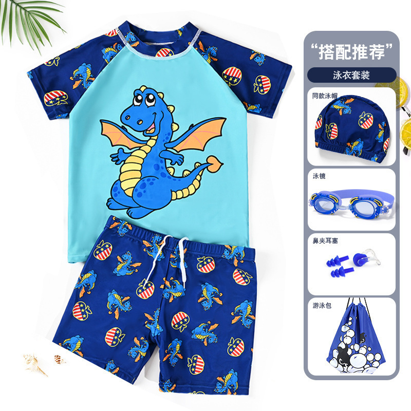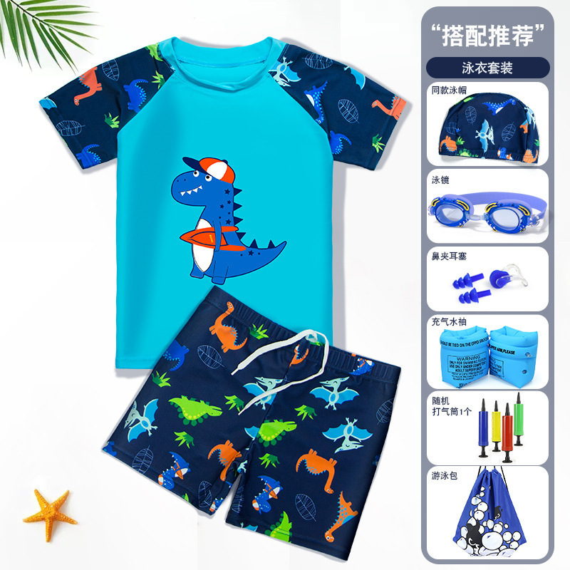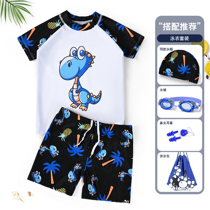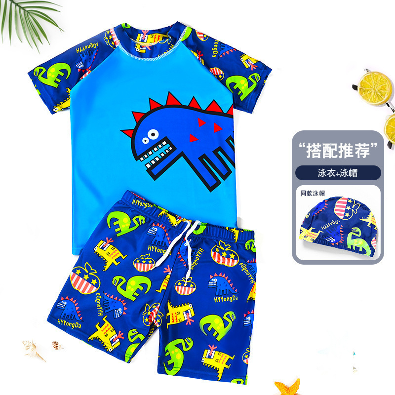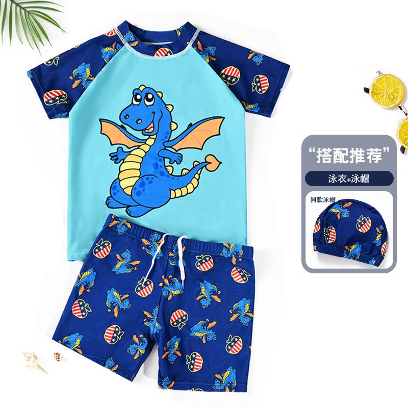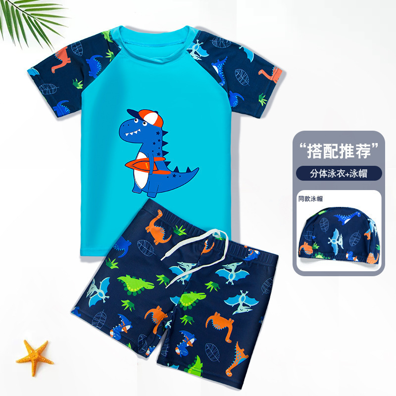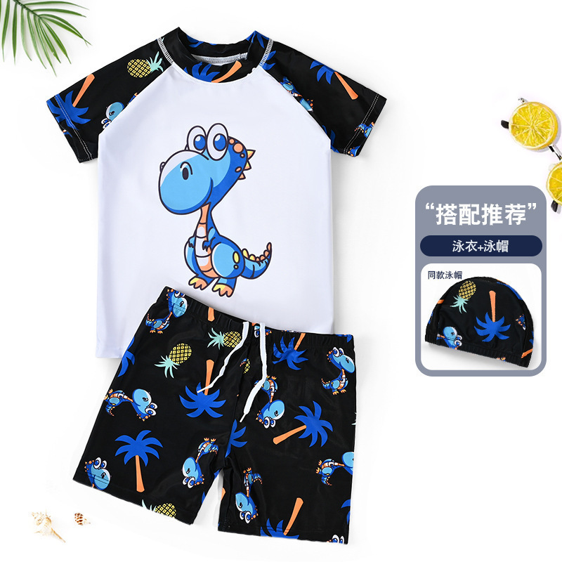 국경 간 어린이 수영복 중소 어린이 귀여운 만화 수영복 3 피스 소년 태양 방지 빠른 건조 수영복 도매