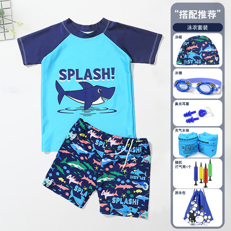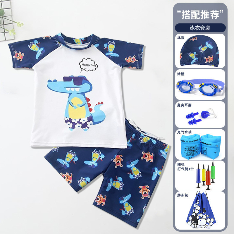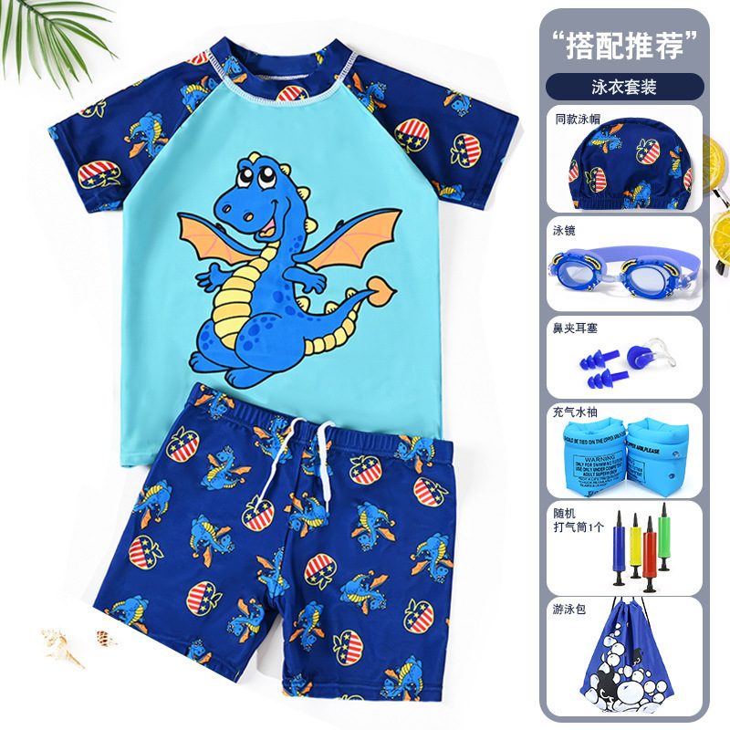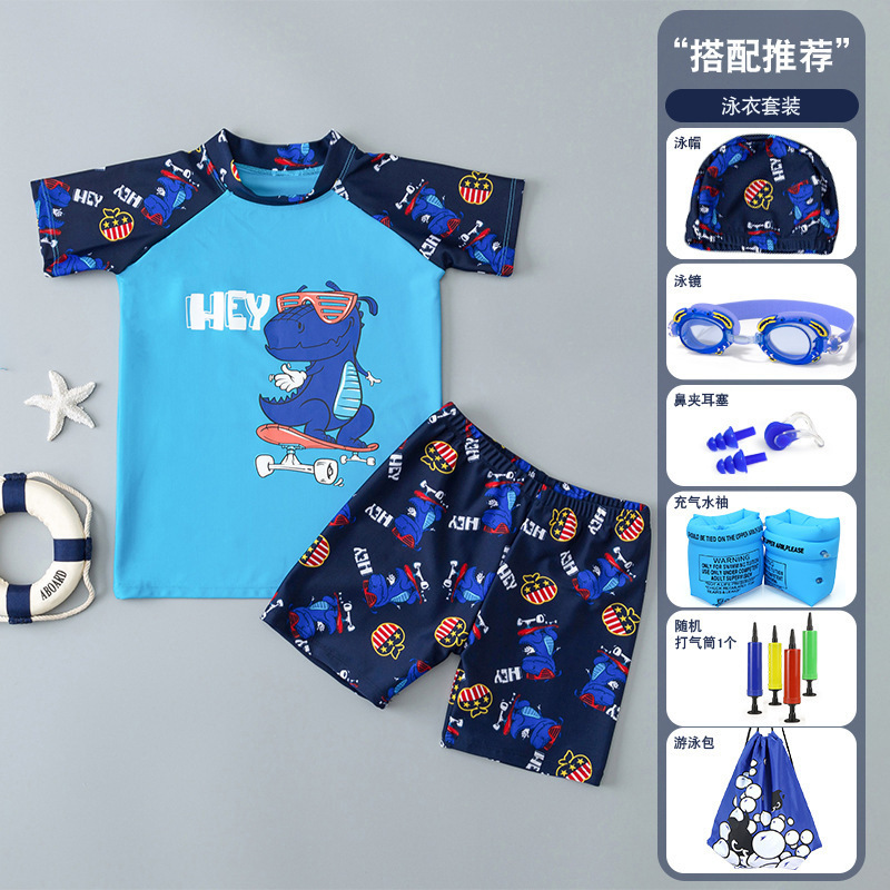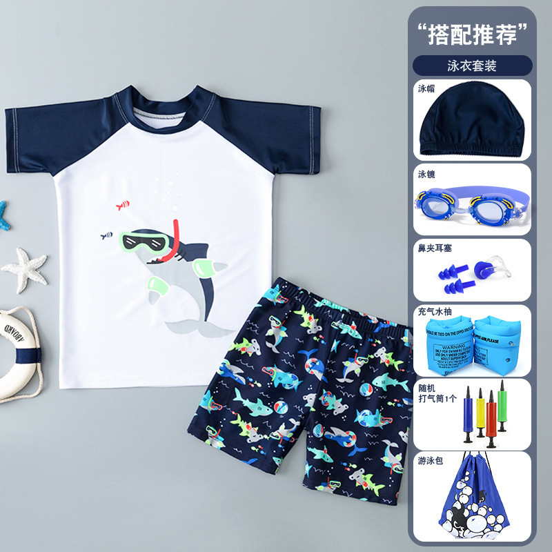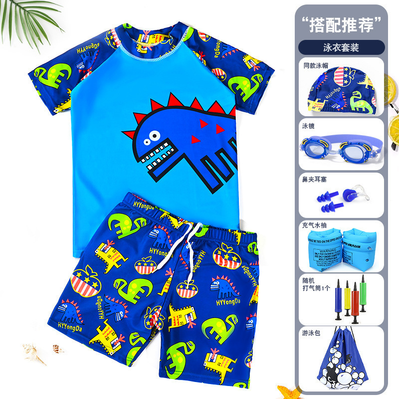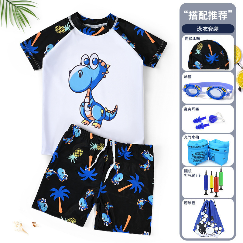 국경 간 어린이 수영복 중소 어린이 귀여운 만화 수영복 3 피스 소년 태양 방지 빠른 건조 수영복 도매