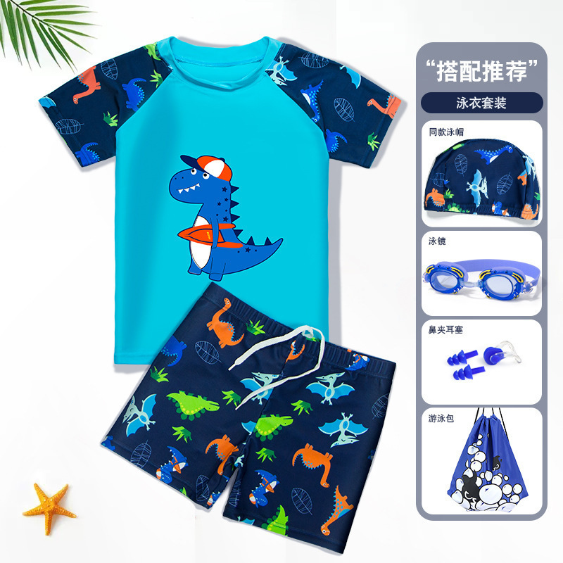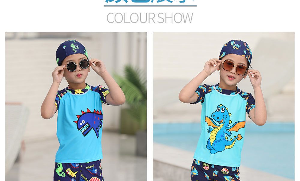 국경 간 어린이 수영복 중소 어린이 귀여운 만화 수영복 3 피스 소년 태양 방지 빠른 건조 수영복 도매스토어 가기