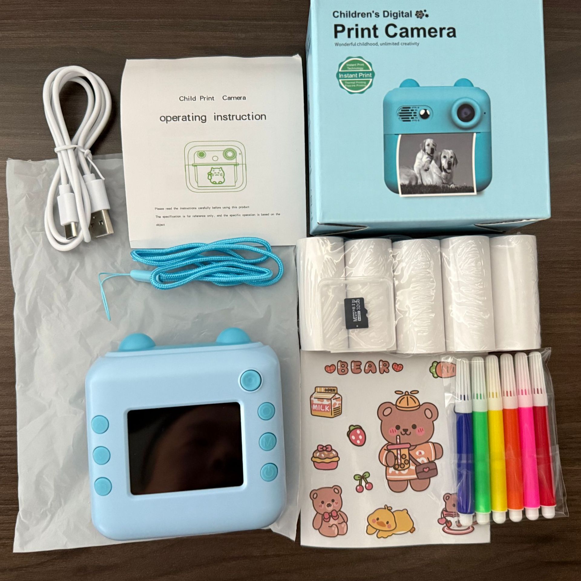 • 파란색 + 32G 메모리 카드 + 인화지 5롤 + 컬러 펜 스티커