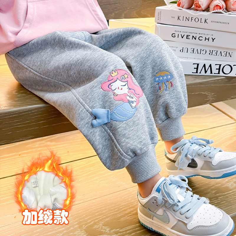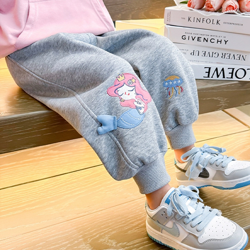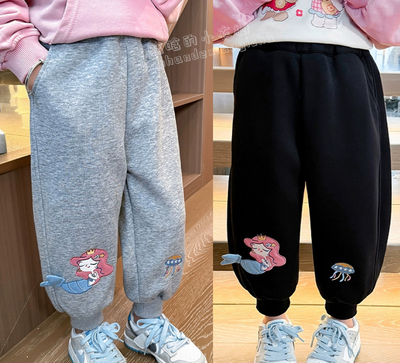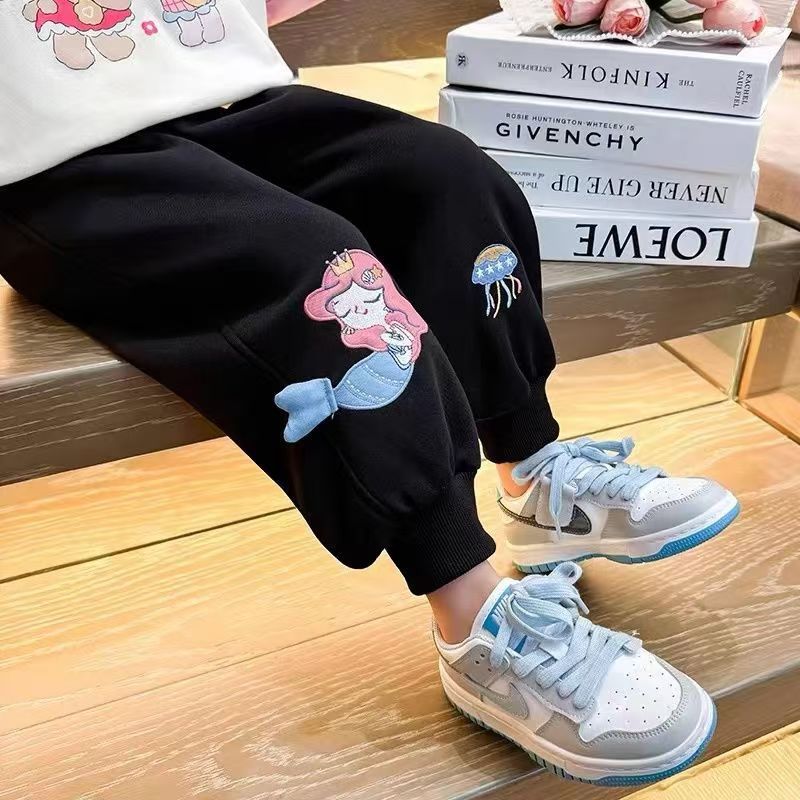 소녀 인어 땀 바지 2025 새로운 봄과 가을 유행 유행 어린이 소녀 캐주얼 학습 성장 바지스토어 가기