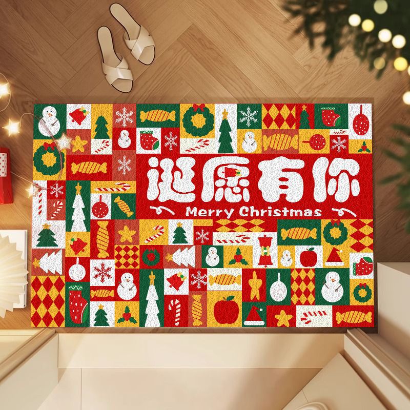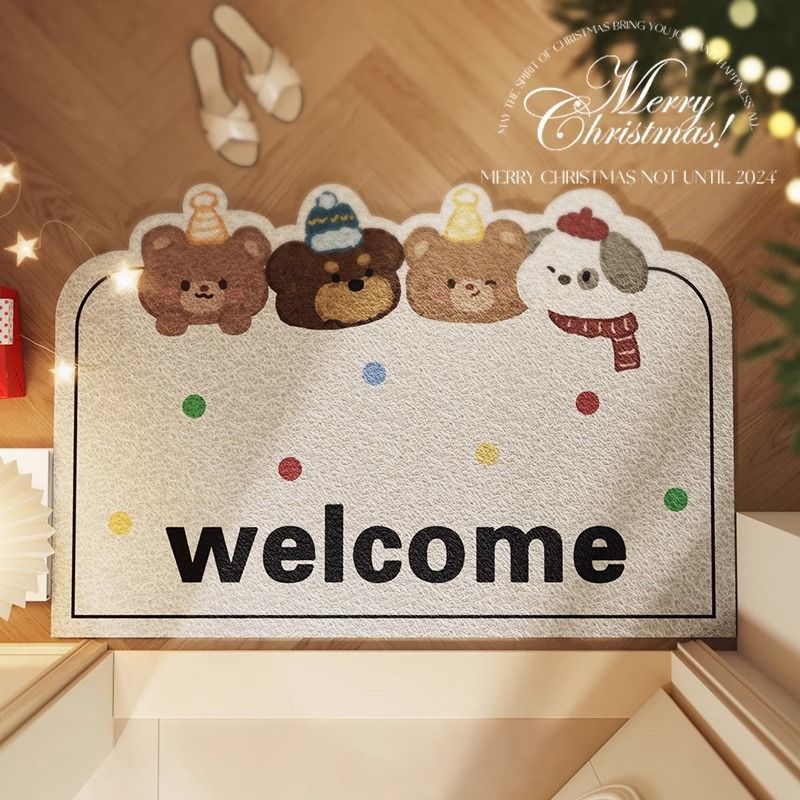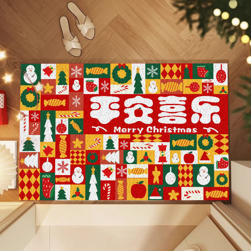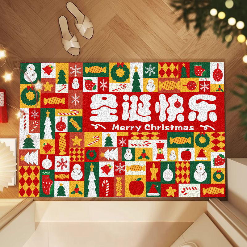 미국식 현관 매트, 얼룩 방지 현관 발매트, 크리스마스용, 절단 가능, PVC 실링 바닥재, 실외 먼지 제거스토어 가기
