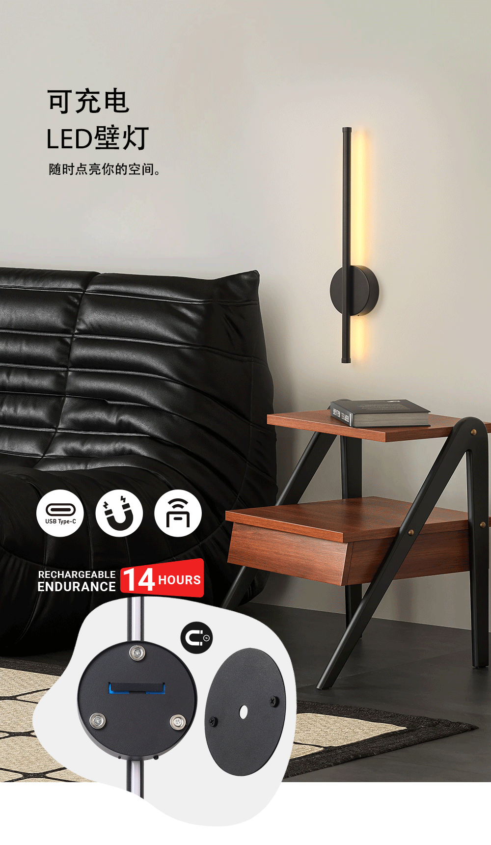 원격 제어 디스크 충전 벽 램프 실내 거실 침실 침대 옆 장식 램프 LED 배선 무료 자기 벽 램프 도매스토어 가기