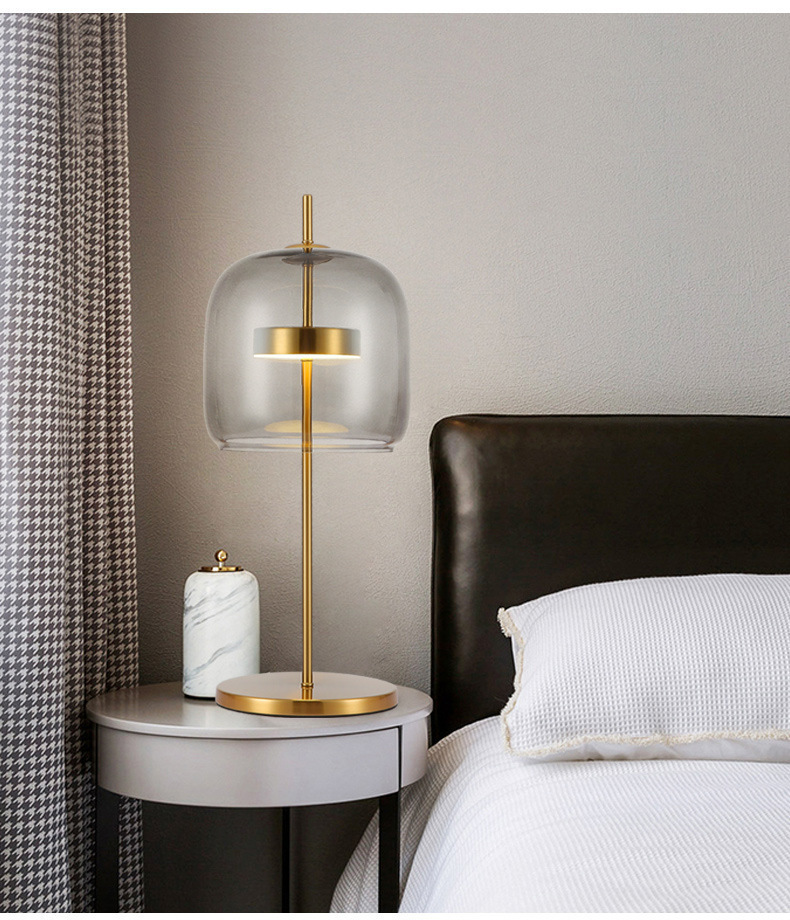 북유럽 간단한 창조적 인 디자이너 거실 유리 테이블 램프 현대 침대 LED 침실 연구 모델 룸 호텔
