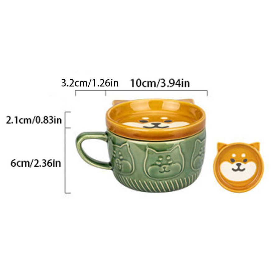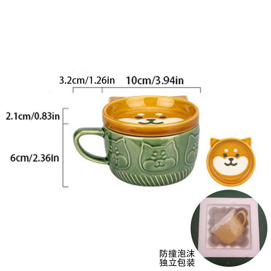일본식 만화 고양이 세라믹 컵 뚜껑 포함 창의적인 시바견 커피잔 고급스러운 커플 컵 개별 포장 충격 방지