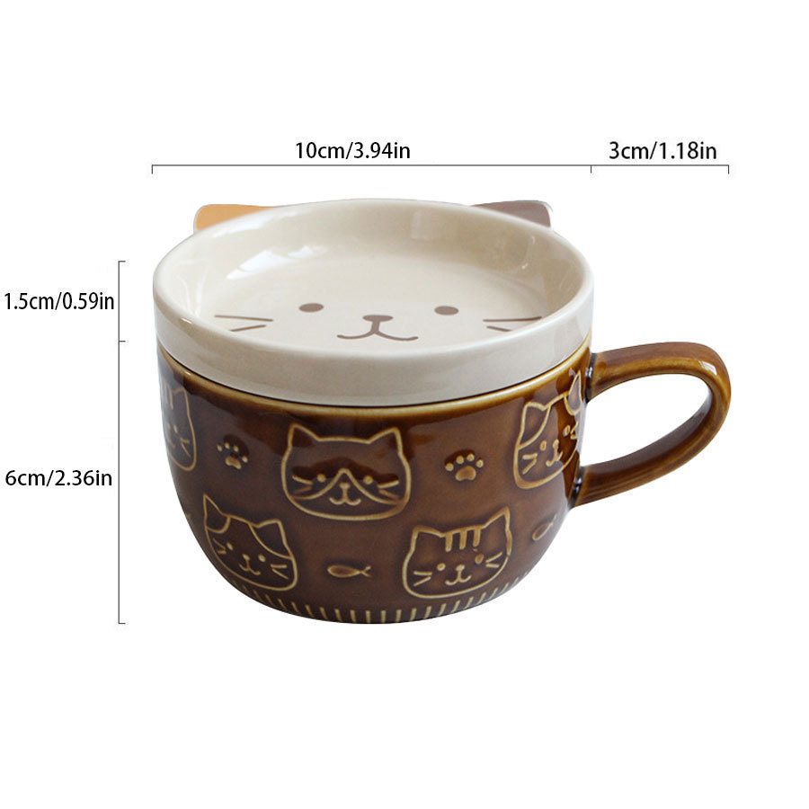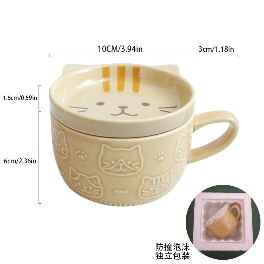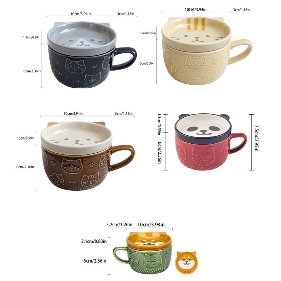 일본식 만화 고양이 세라믹 컵 뚜껑 포함 창의적인 시바견 커피잔 고급스러운 커플 컵 개별 포장 충격 방지스토어 가기
