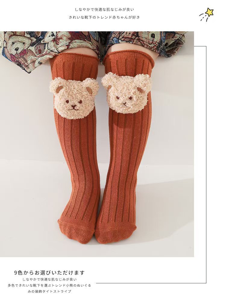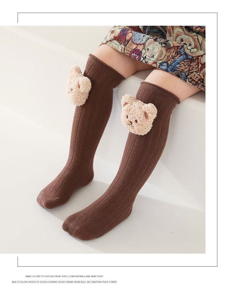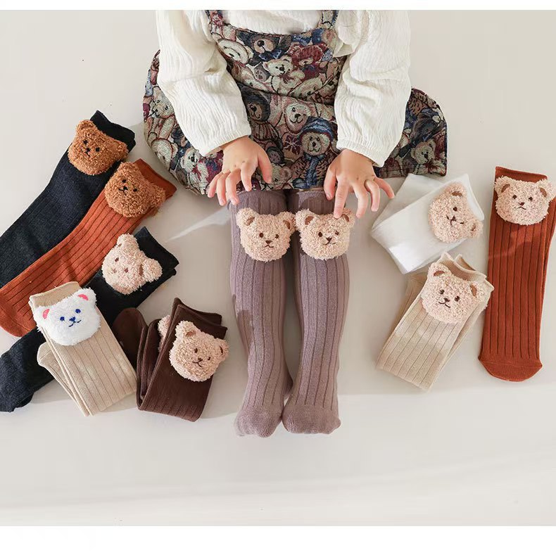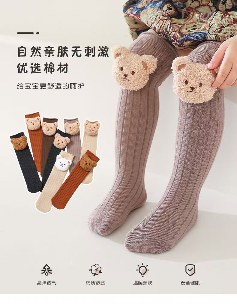 남녀 아동용 양말 가을 겨울 A급 다용도 롱삭스 곰돌이 인형 아기 무릎 위까지 오는 힐리스 스트레이트 종아리 양말
