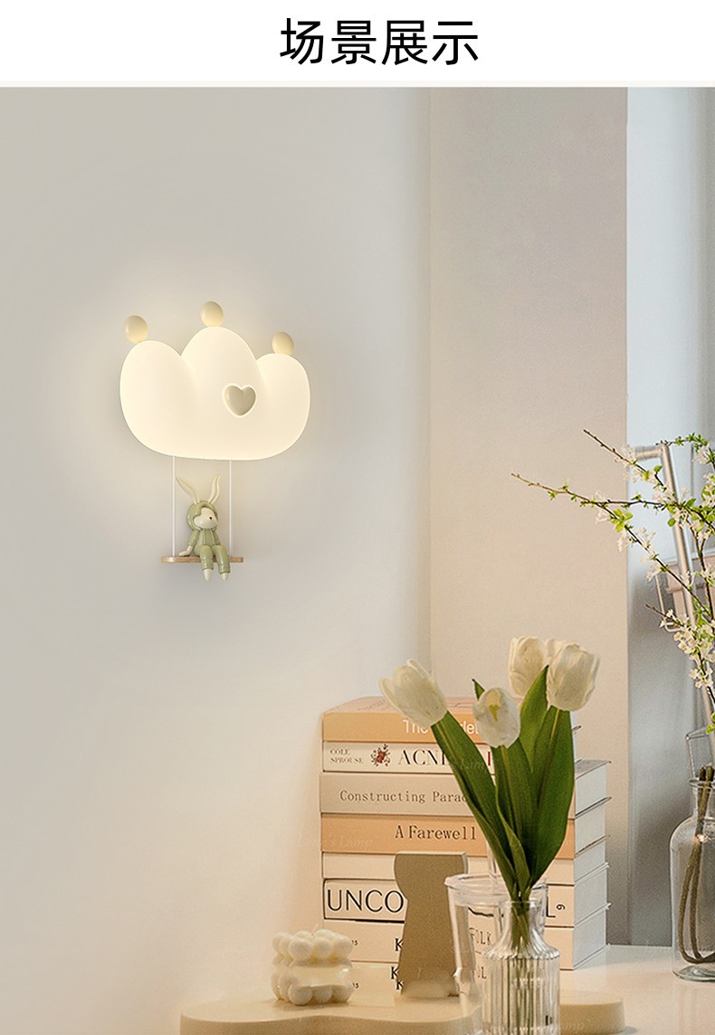 창조적 인 따뜻한 현대 간단한 벽 램프 크림 스타일 만화 어린이 창조적 인 토끼 방 침실 램프