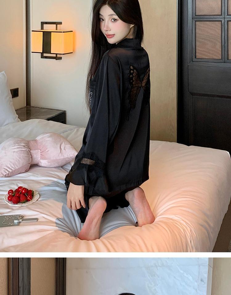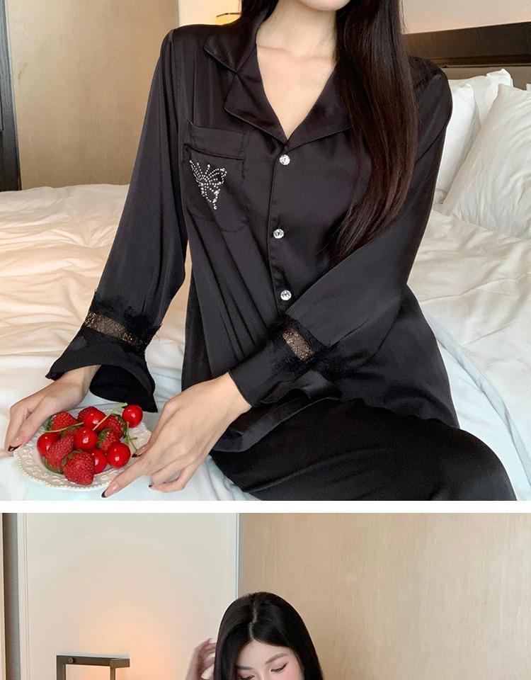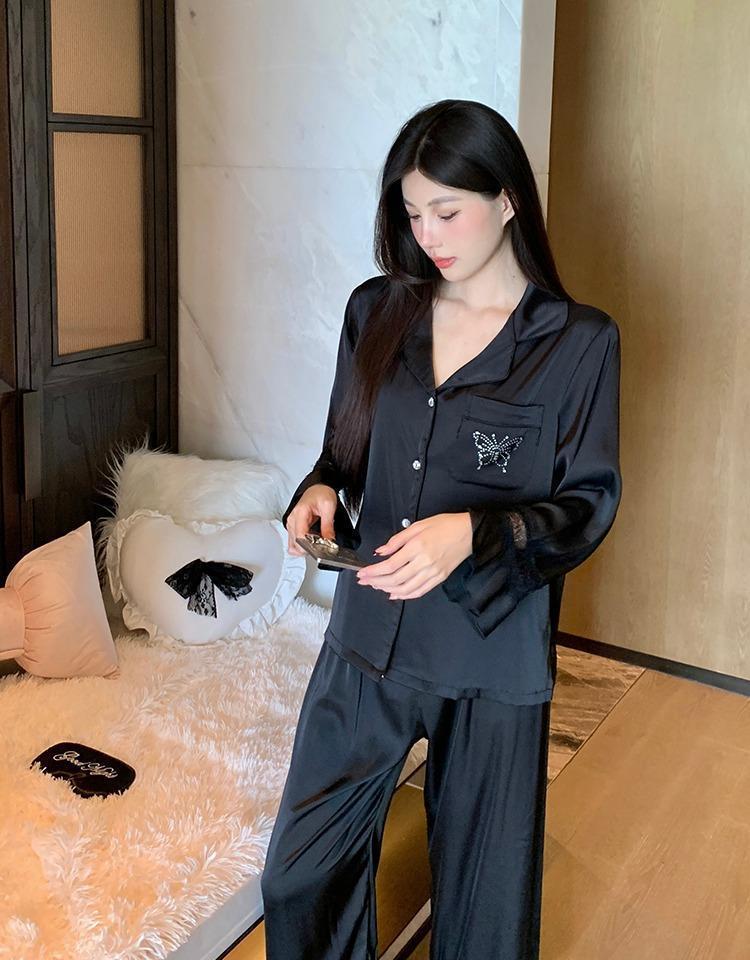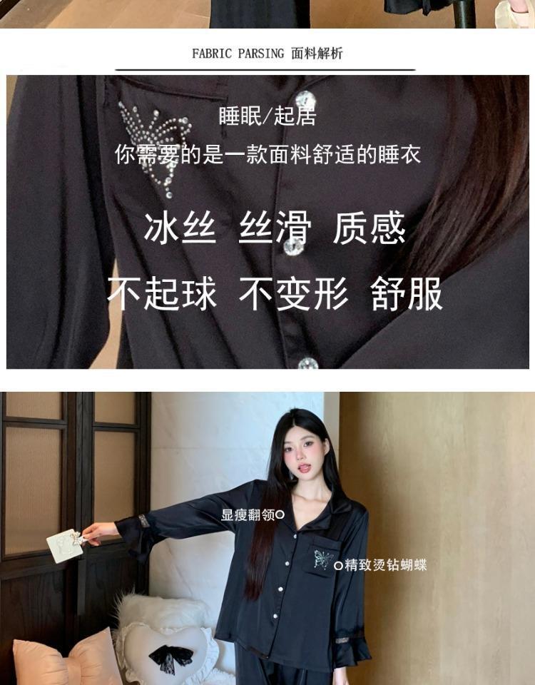여름 착용 가능한 긴 소매 바지 세트 시즌 두 달콤한 새 나비 잠옷 여성의 봄과 가을 아이스 실크 홈 옷스토어 가기