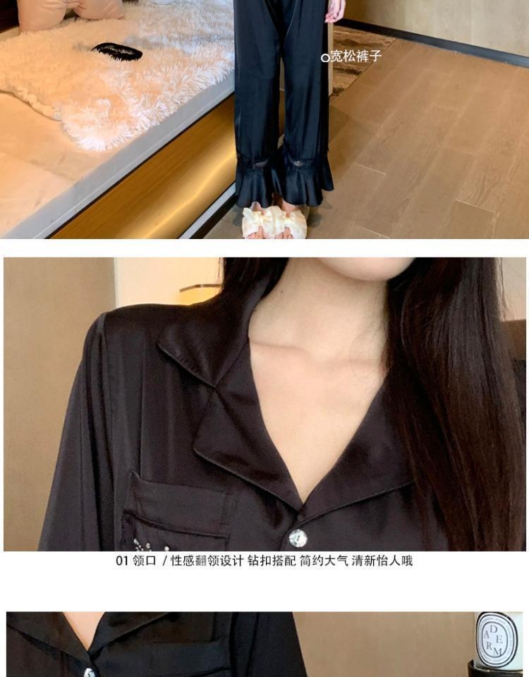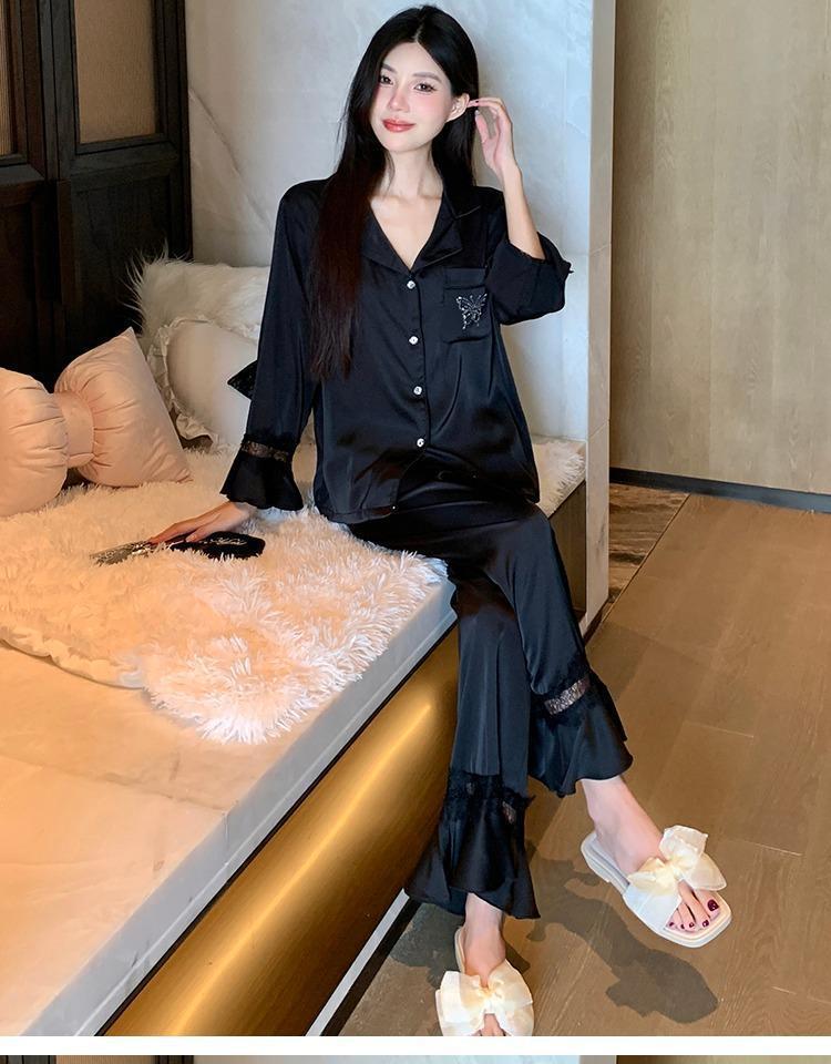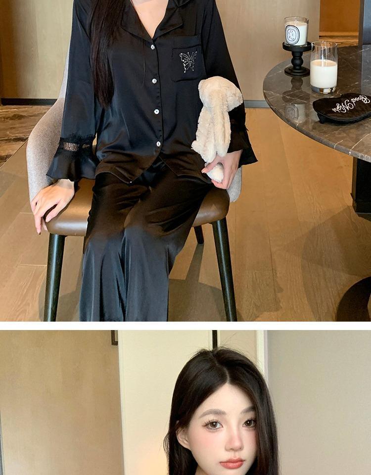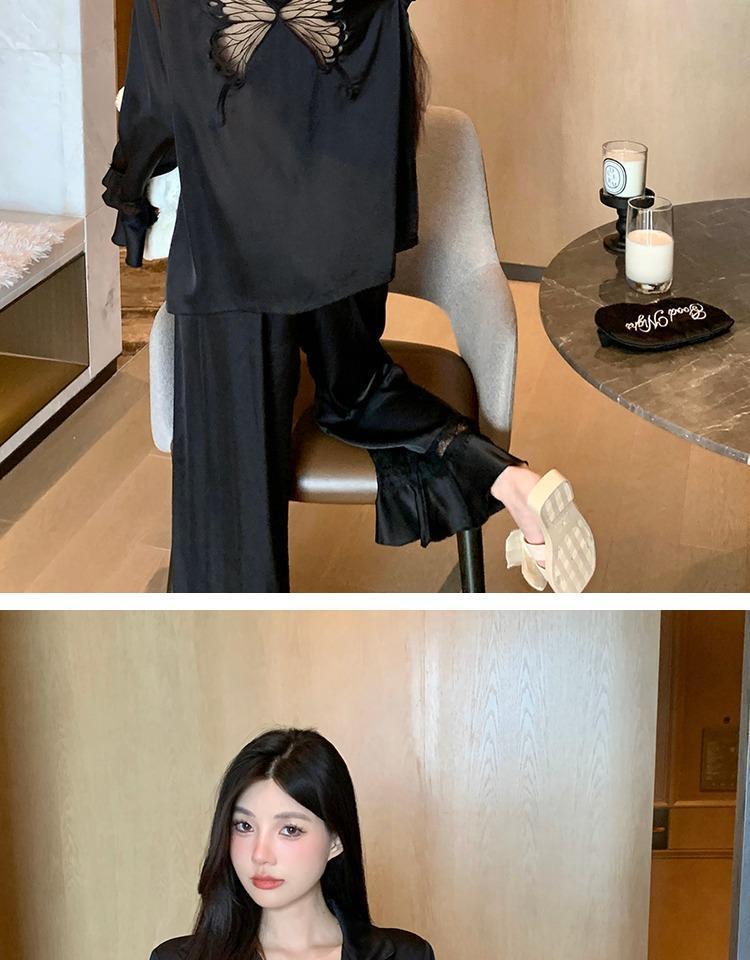여름 착용 가능한 긴 소매 바지 세트 시즌 두 달콤한 새 나비 잠옷 여성의 봄과 가을 아이스 실크 홈 옷