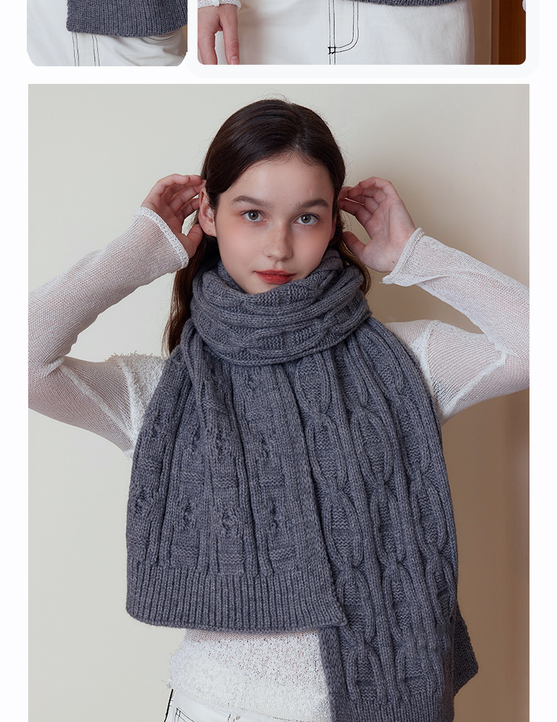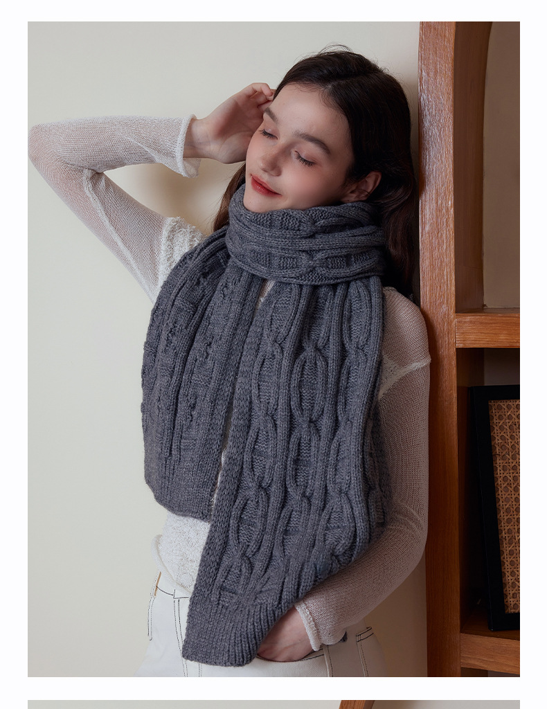 단색 니트 스카프 목도리 이중 목적 양모 스카프 여성의 가을 및 겨울 분위기 확대 일본 하이 엔드 감각스토어 가기