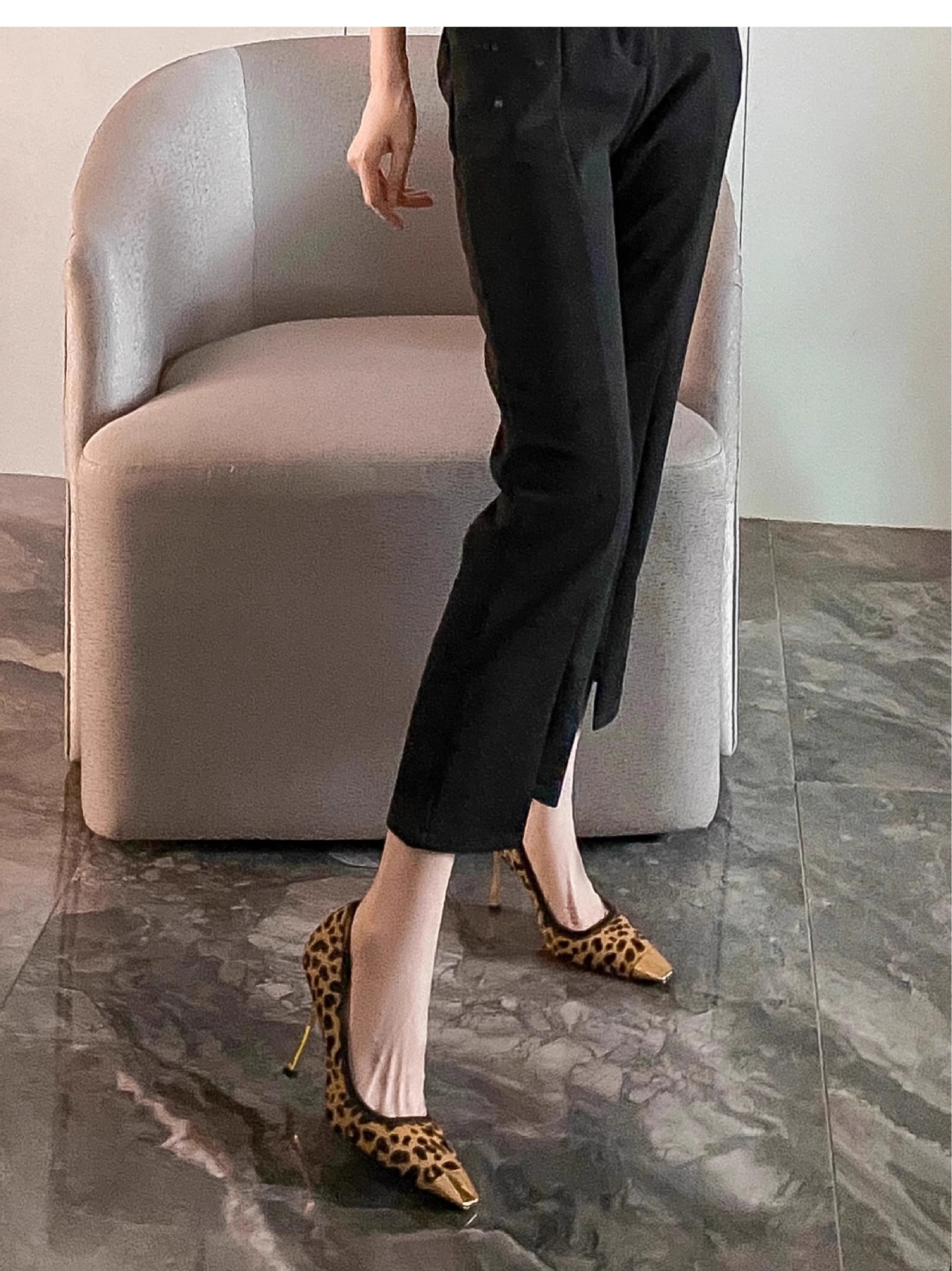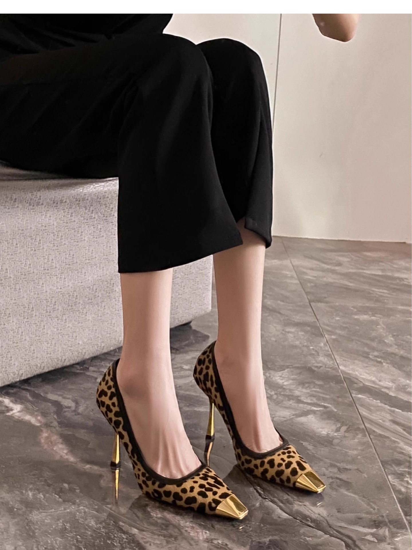 가을 새로운 프랑스 금속 머리 레오파드 무늬 스틸레토 힐 여성 조커 기질 사교계 섹시한 얕은 입스토어 가기