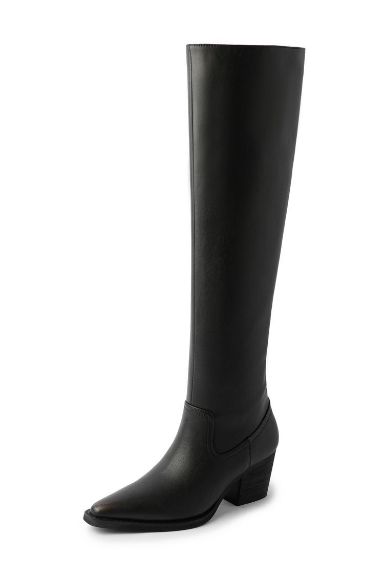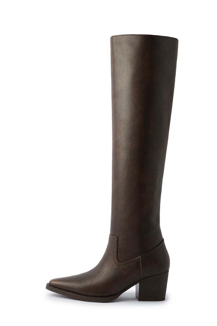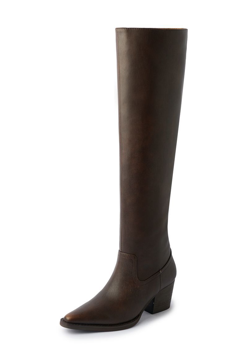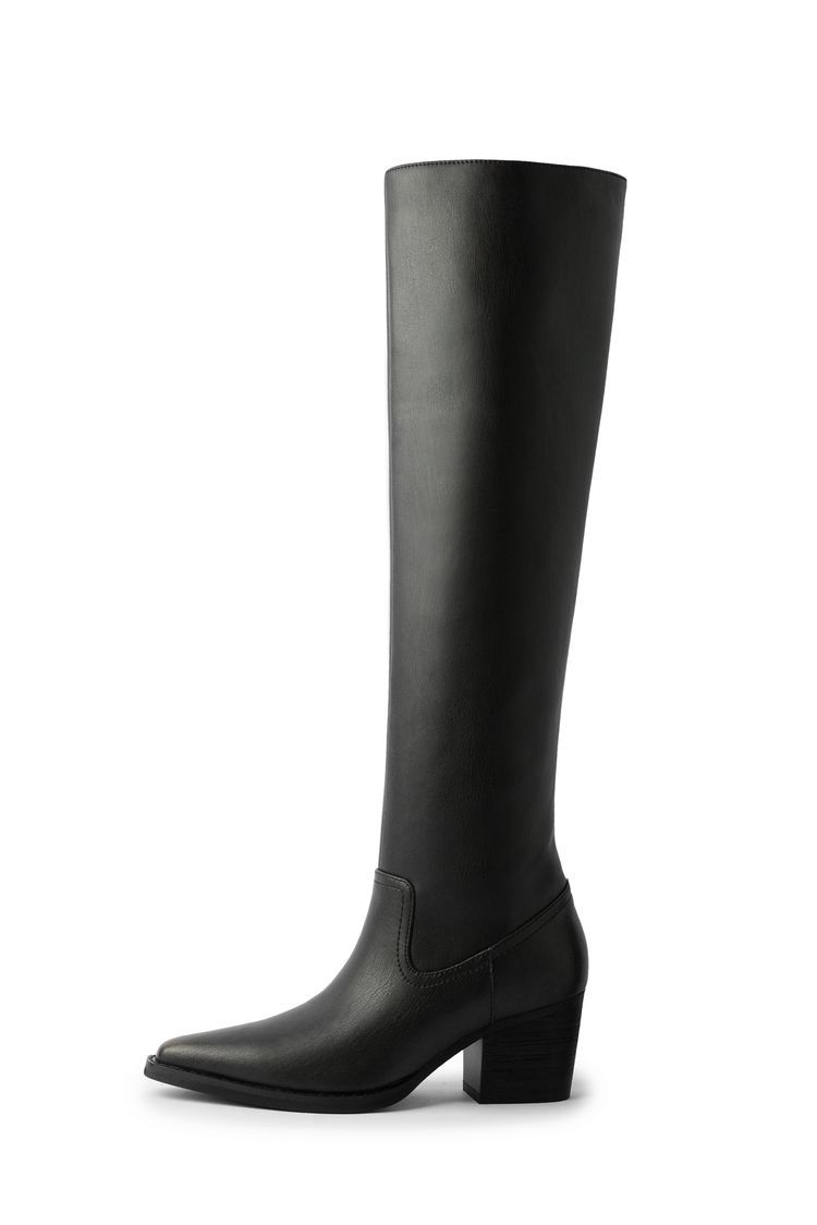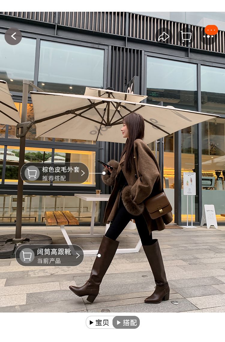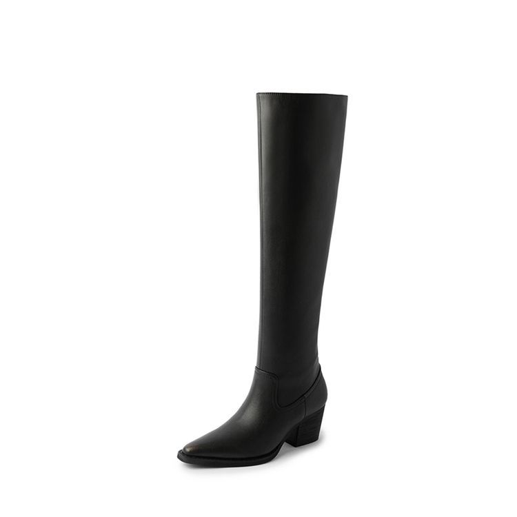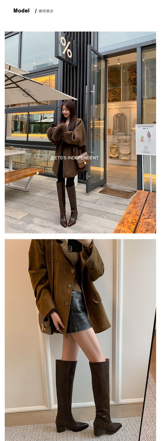2024 포인트 6cm 두꺼운 힐 높은 부츠 여성 가을 및 겨울 무릎 높이 스트레이트 느슨한 가죽 부츠 작은 기사 부츠스토어 가기